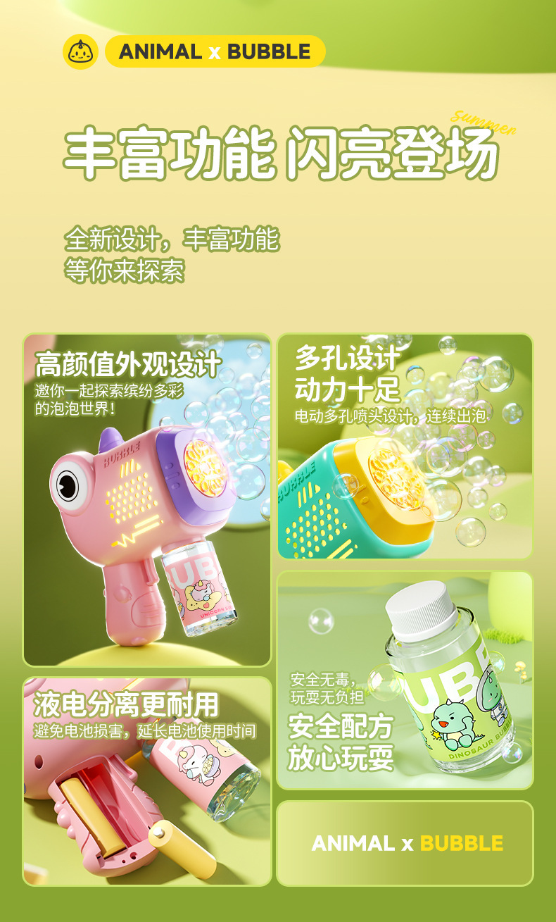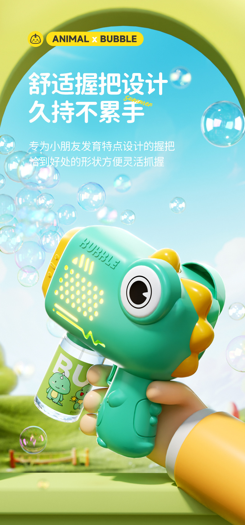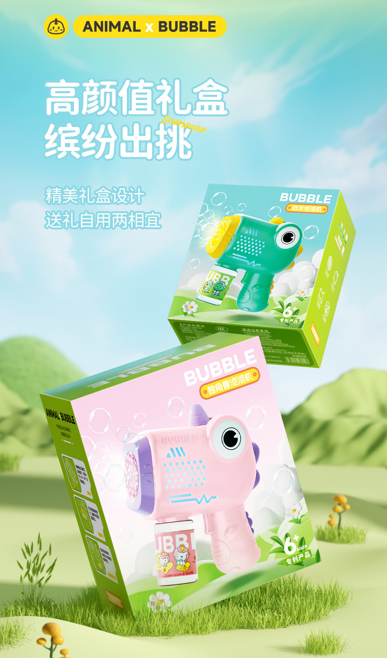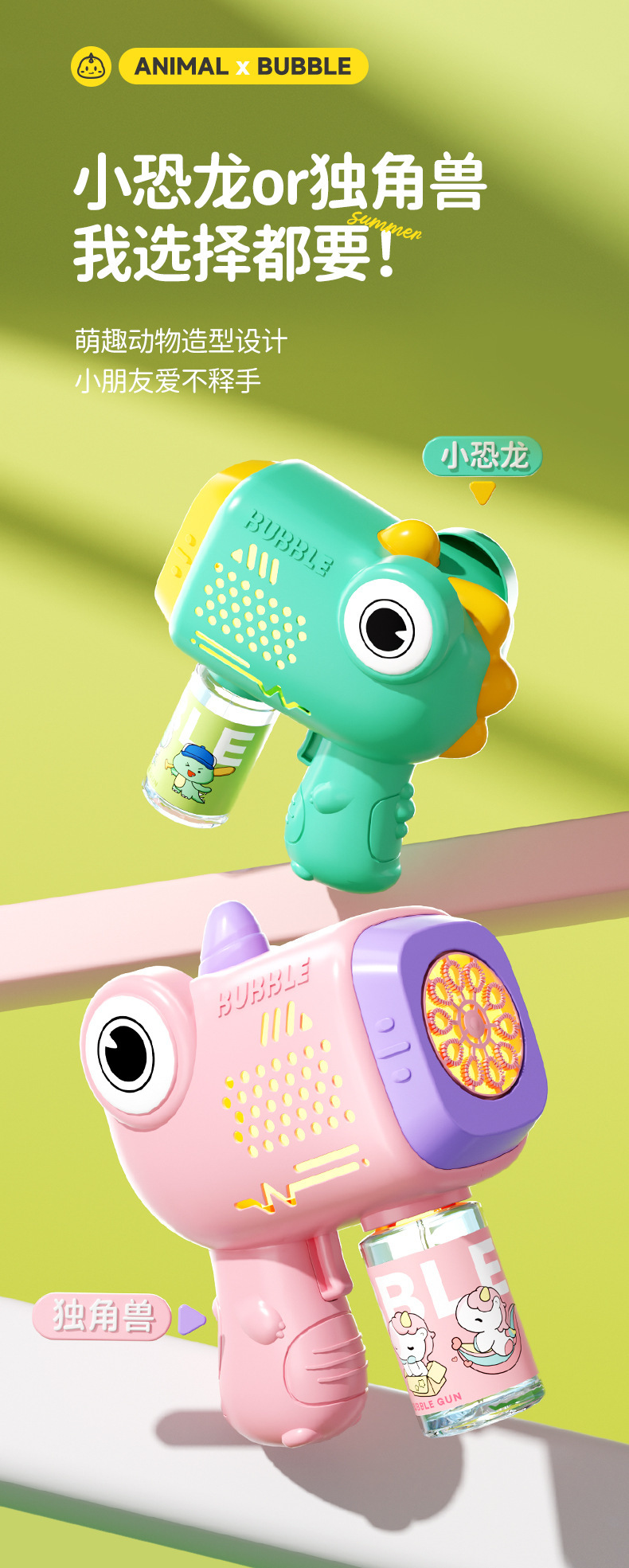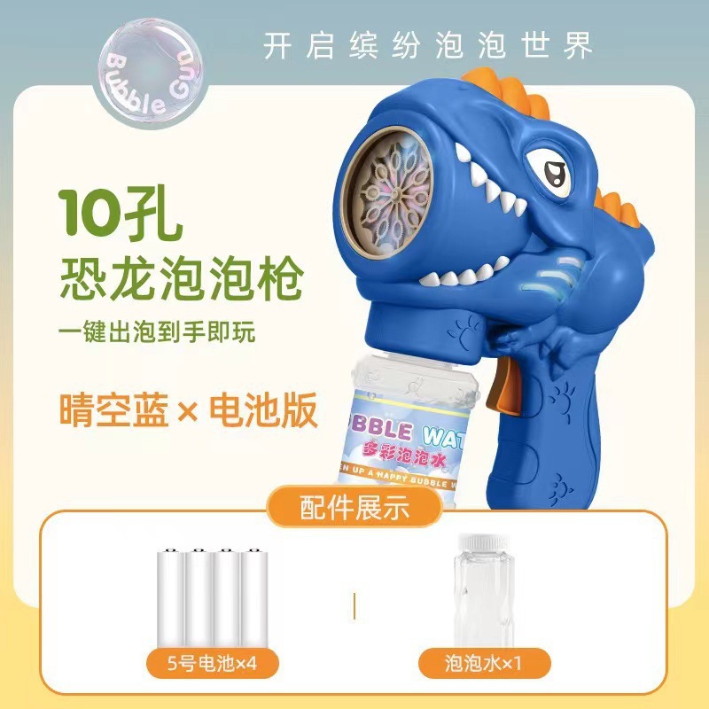 新款电动恐龙泡泡枪12孔泡泡机玩具全自动手持不漏太空小钢炮儿童