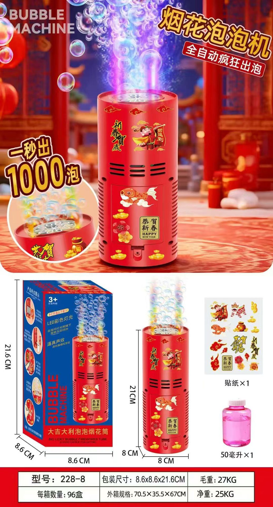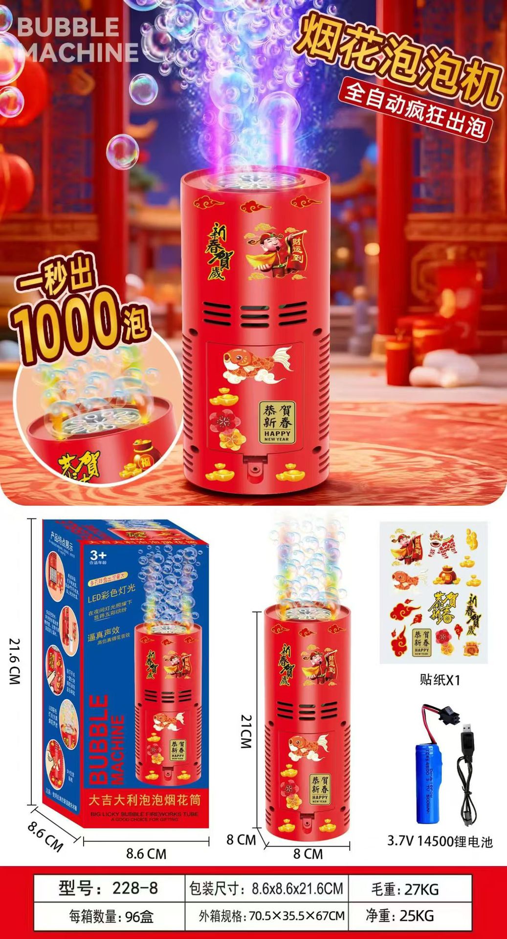 抖音热卖爆款新年烟花泡泡机全自动鞭炮电动音效生日礼物网红玩具