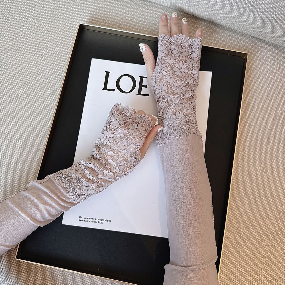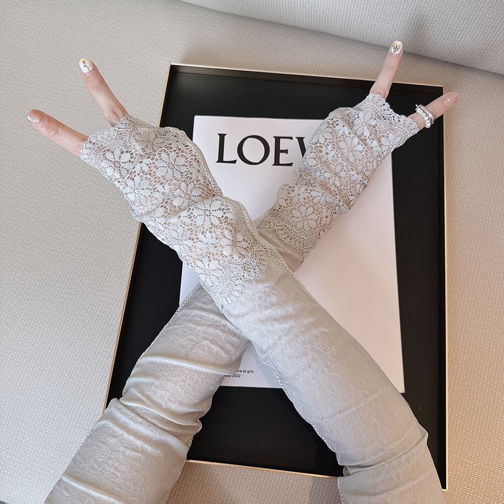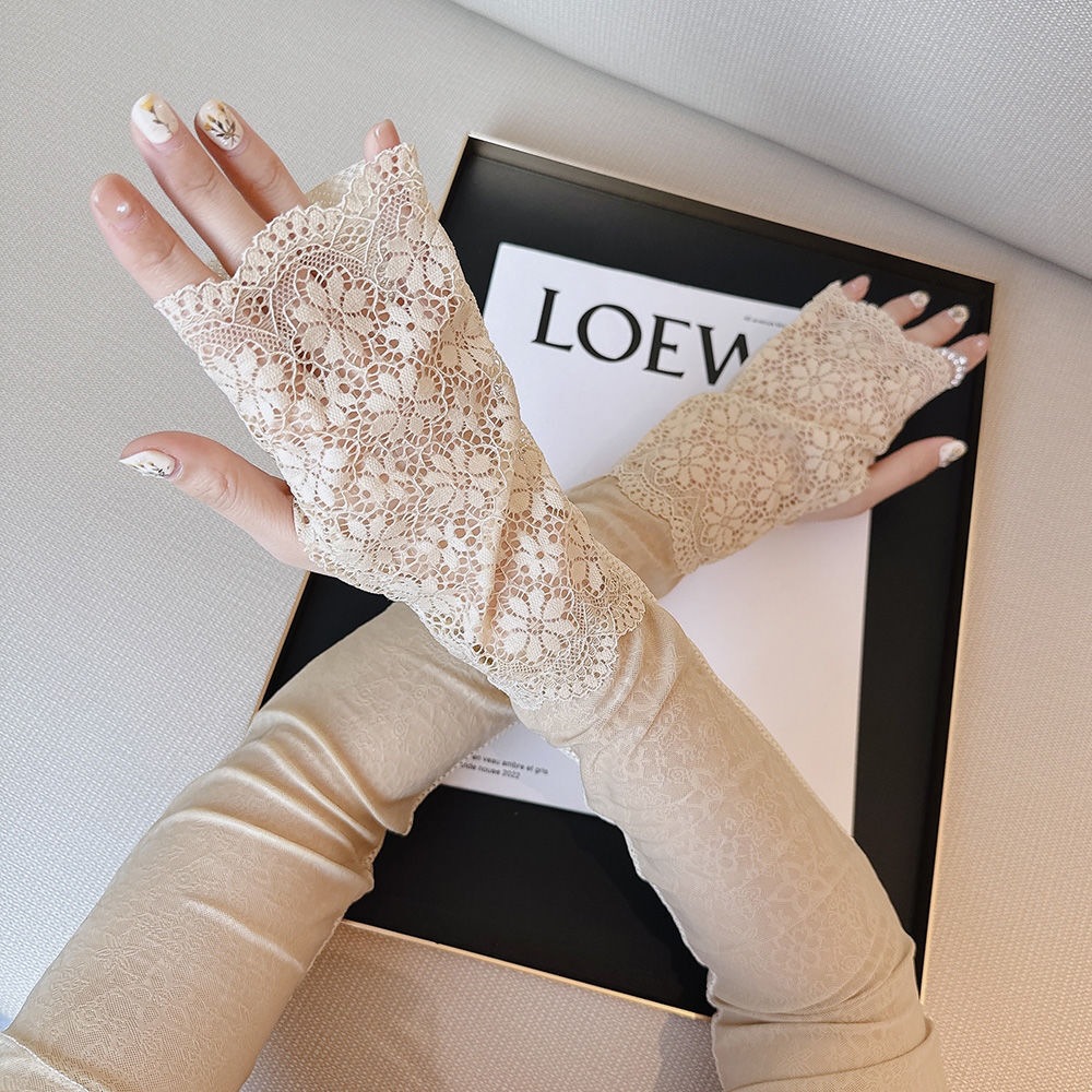时尚气质蕾丝妈妈款开车防晒夏冰袖简约女长款弹性户外手袖袖套