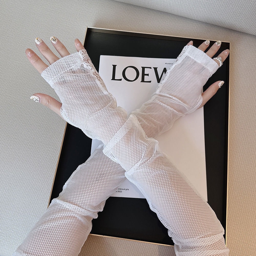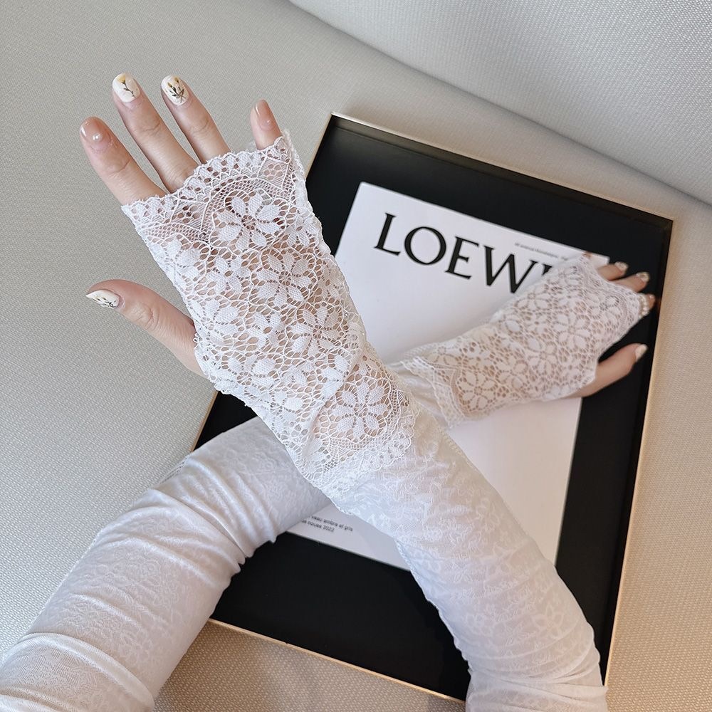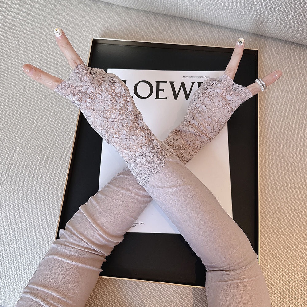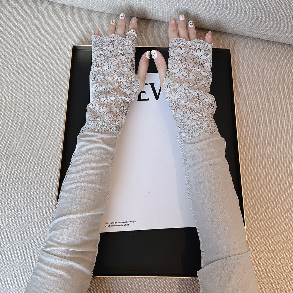 时尚气质蕾丝妈妈款开车防晒夏冰袖简约女长款弹性户外手袖袖套