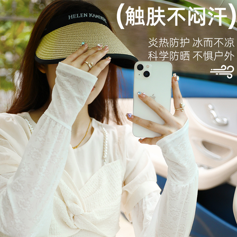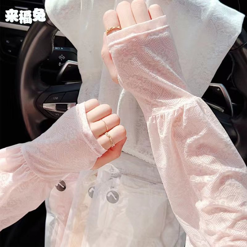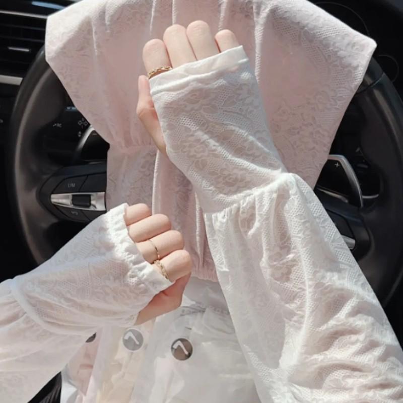 蕾丝冰袖夏季仙女风薄款网纱护袖户外出行防紫外线防晒冰丝套袖