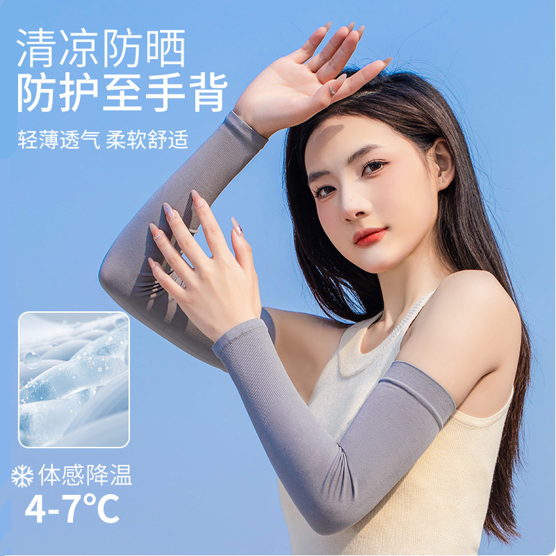 冰丝防晒袖套户外防晒男女骑行护臂纯色袖套防晒防紫外线冰丝袖子