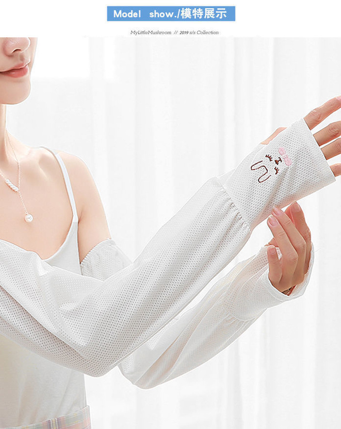 兔子防晒袖套夏季防紫外线宽松透气网眼遮阳冰丝袖套女款防晒冰袖