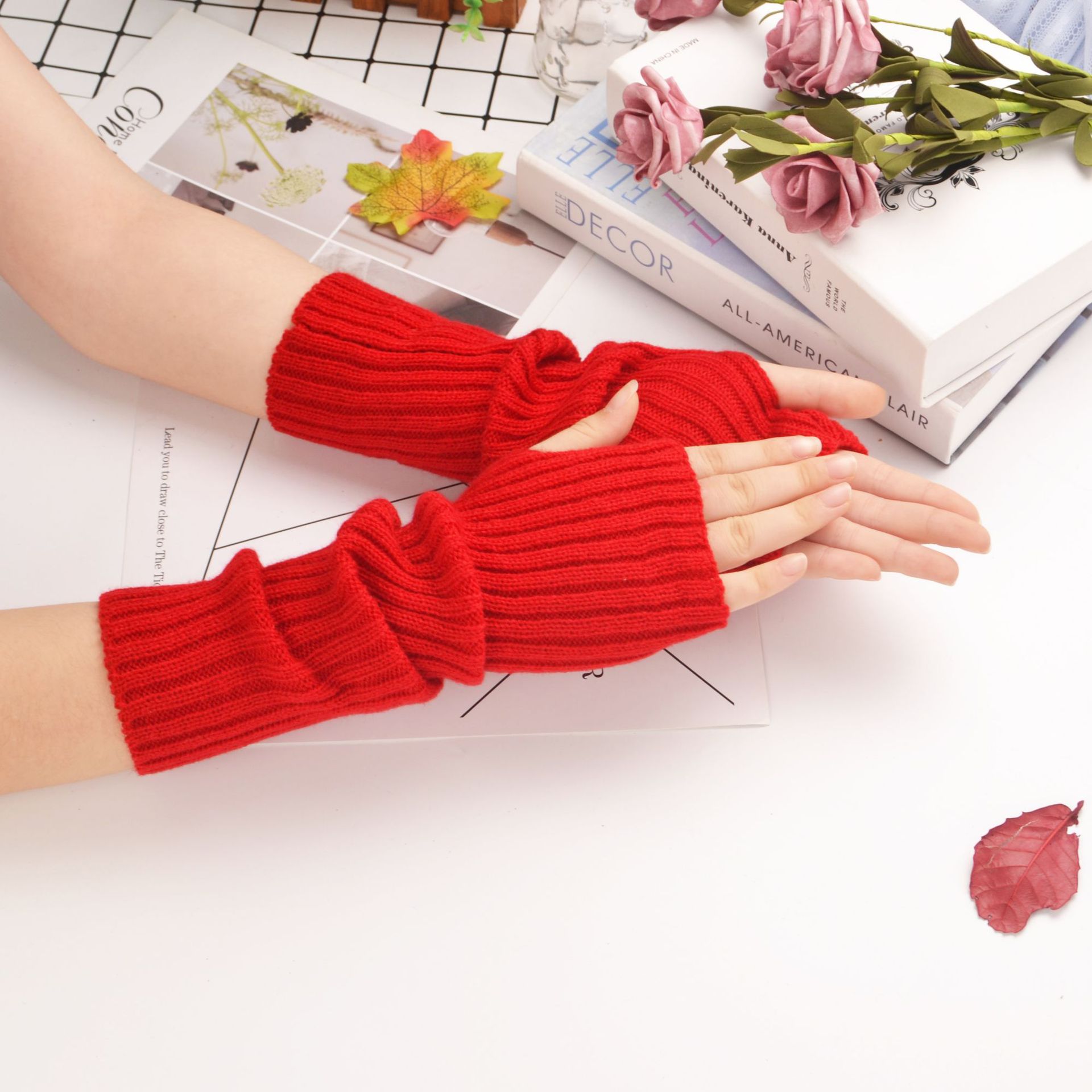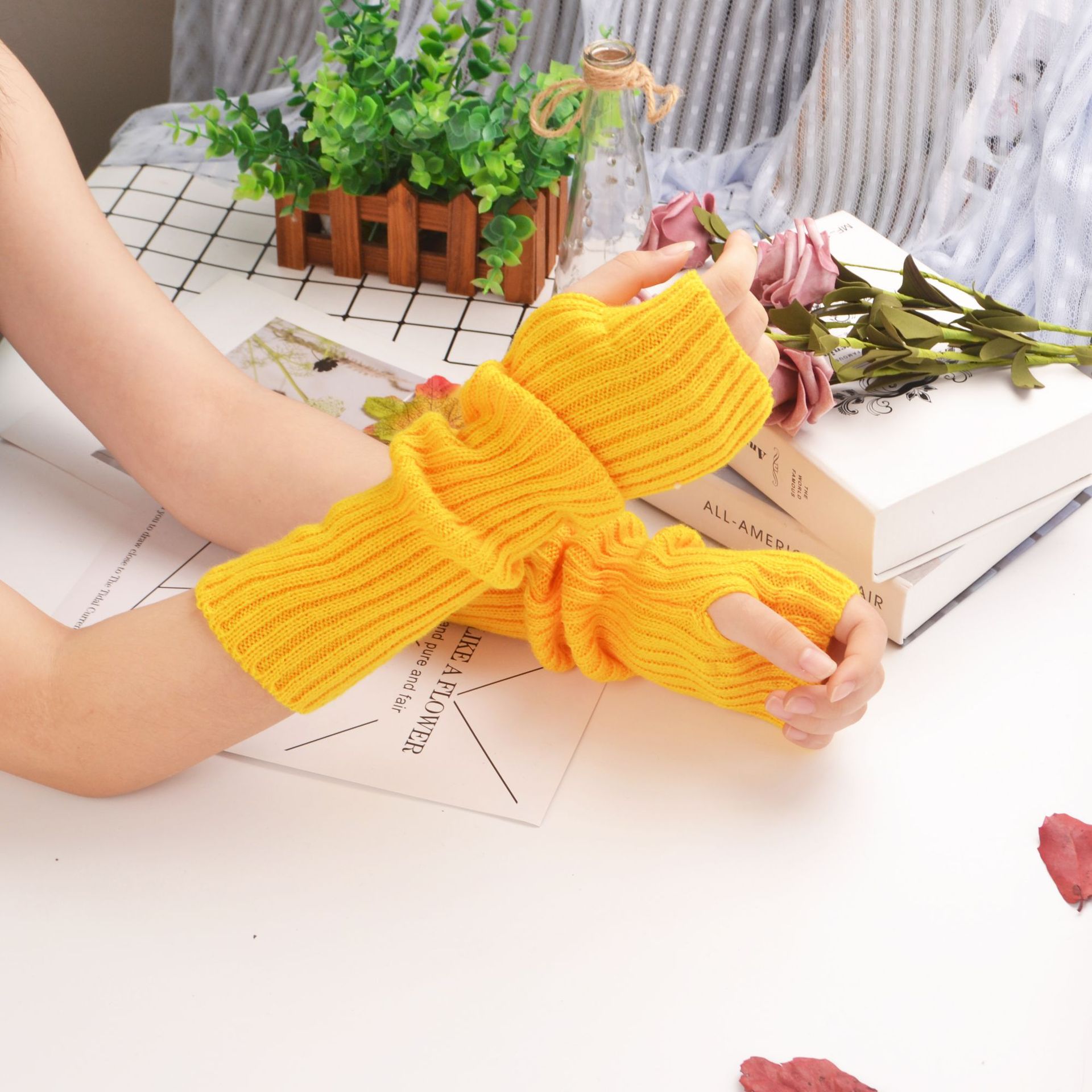 亿繁春秋户外防晒韩版纯色ins荧光个性中长款袖套针织平针手臂套