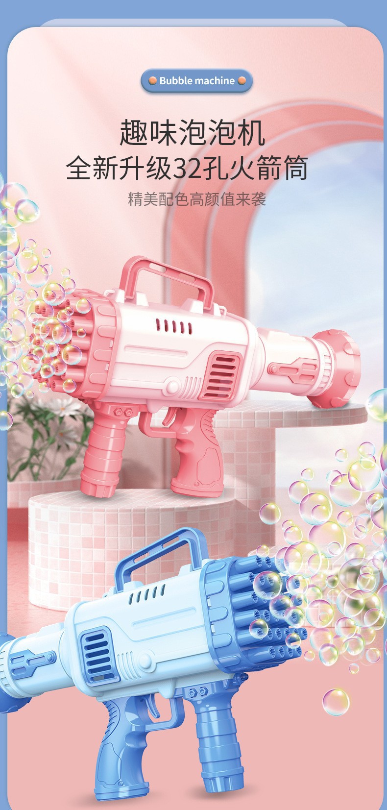 32孔火箭筒泡泡机批发手持加特林婚礼电动泡泡枪儿童摆地摊玩具