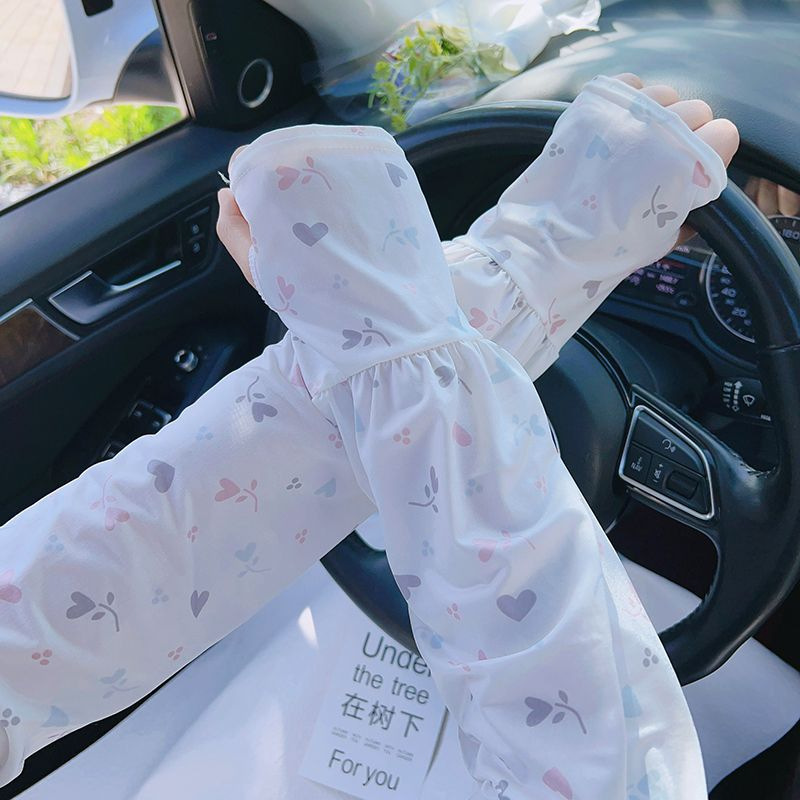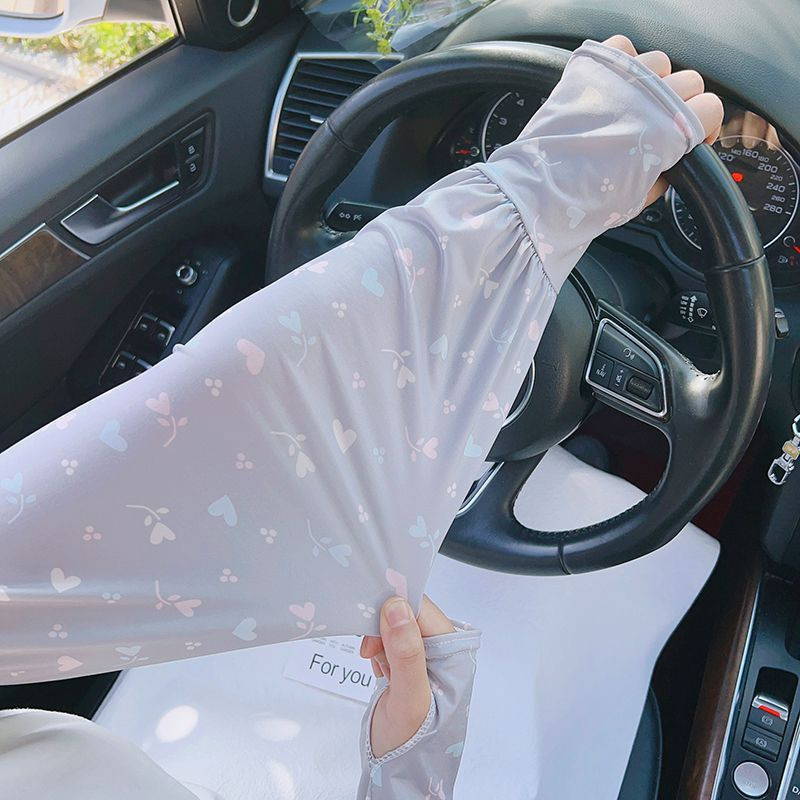 夏季袖套网红百搭宽松心心款边户外防晒透气冰袖女开车旅游防紫外