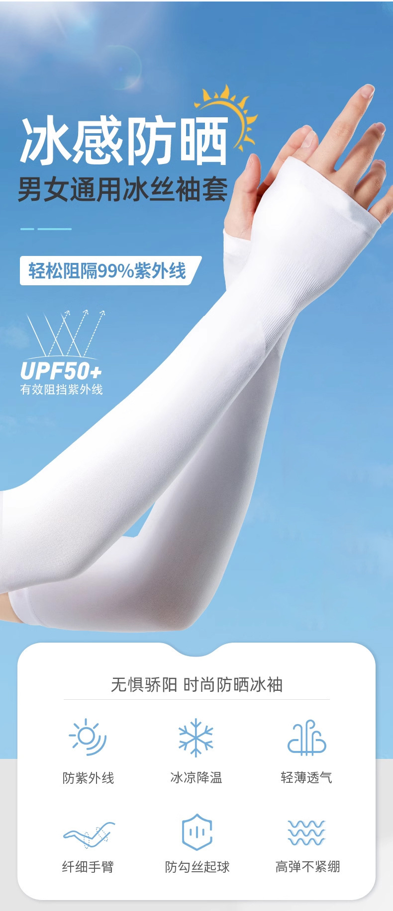 冰丝面料宽松防晒袖套女男防紫外线户外运动开车驱蚊夏季防晒冰袖