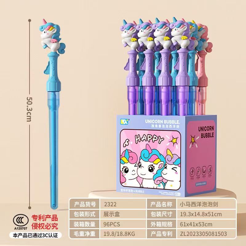 50cm卡通独角兽泡泡棒网红大号吹泡泡机玩具儿童西洋剑带水泡泡枪