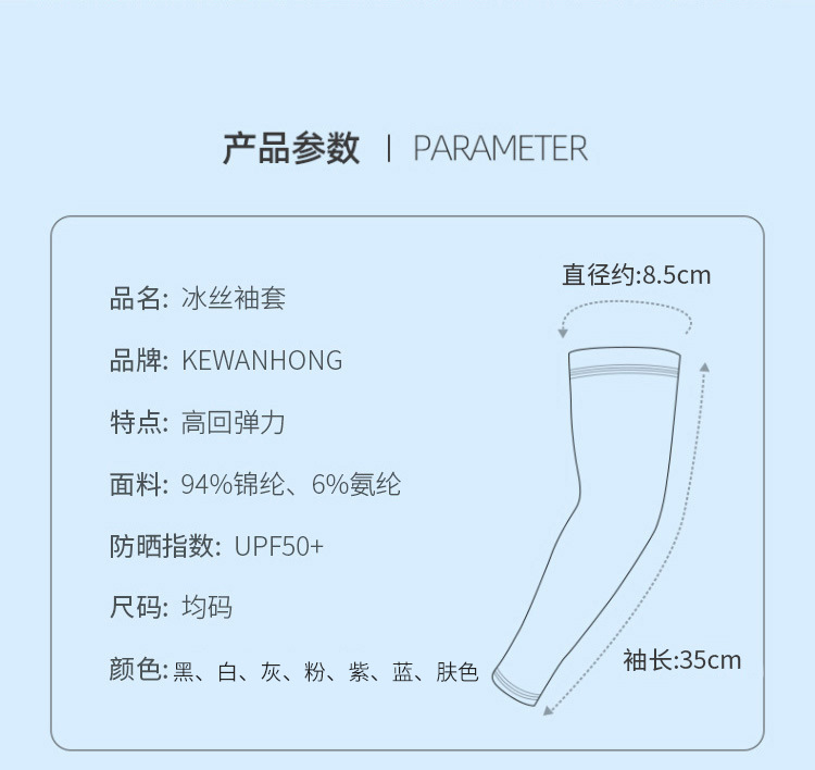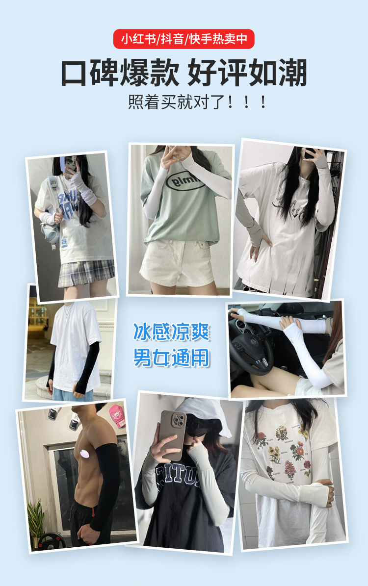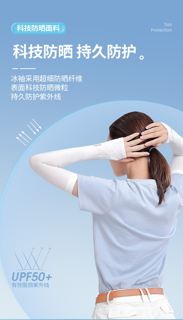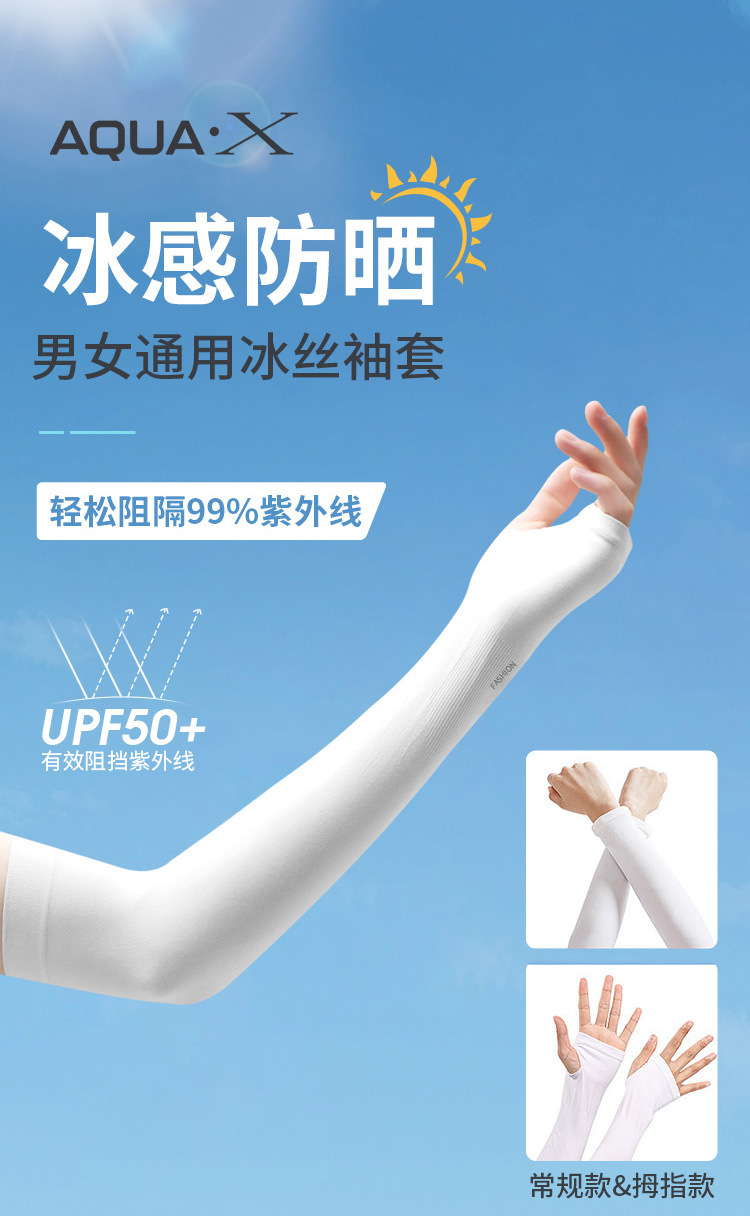 纯色简约冰袖男女夏季冰感防晒袖套开车防紫外线防晒户外骑行袖套