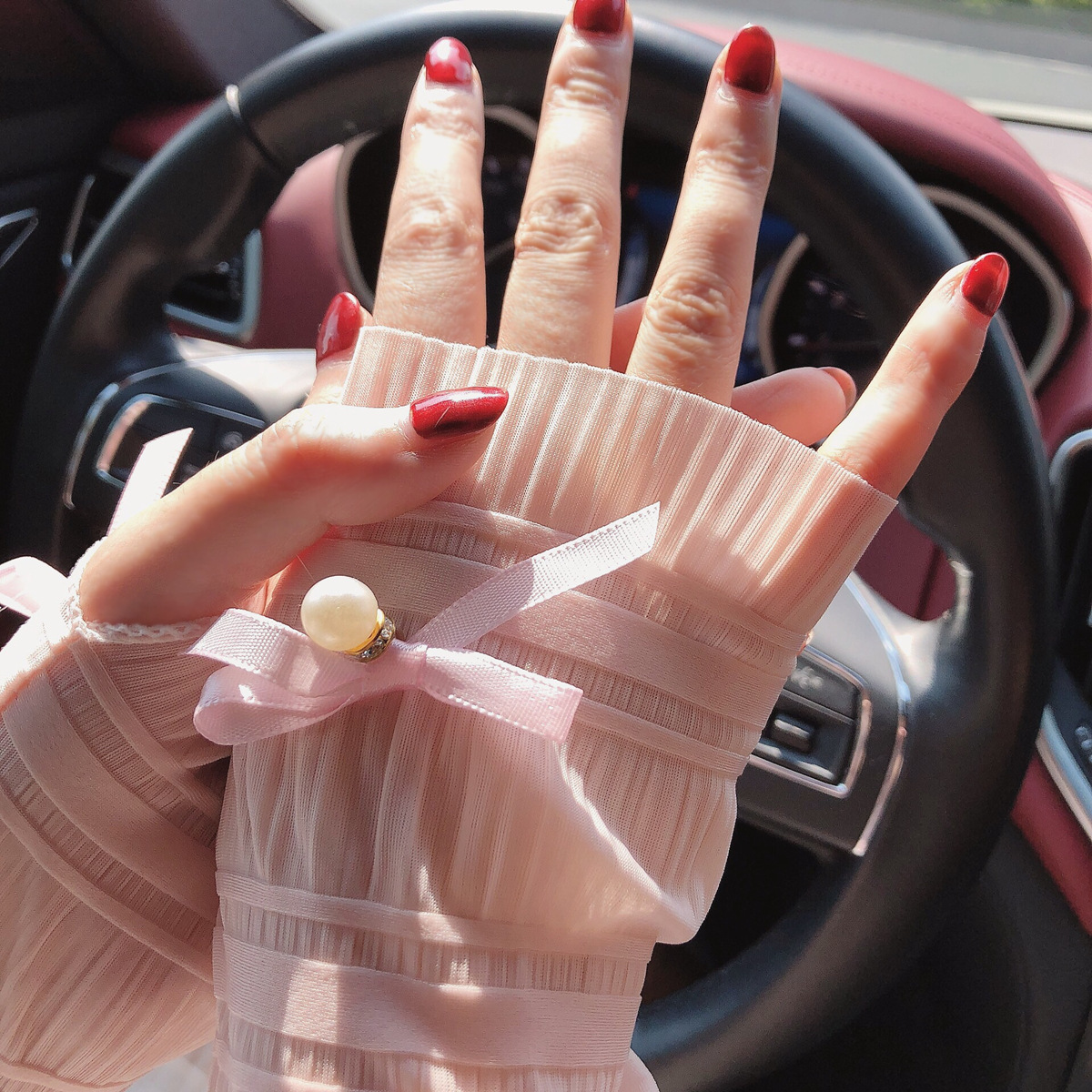 袖套女夏季纯色泡泡冰丝透气防晒袖套甜美网纱户外骑行防晒手臂套