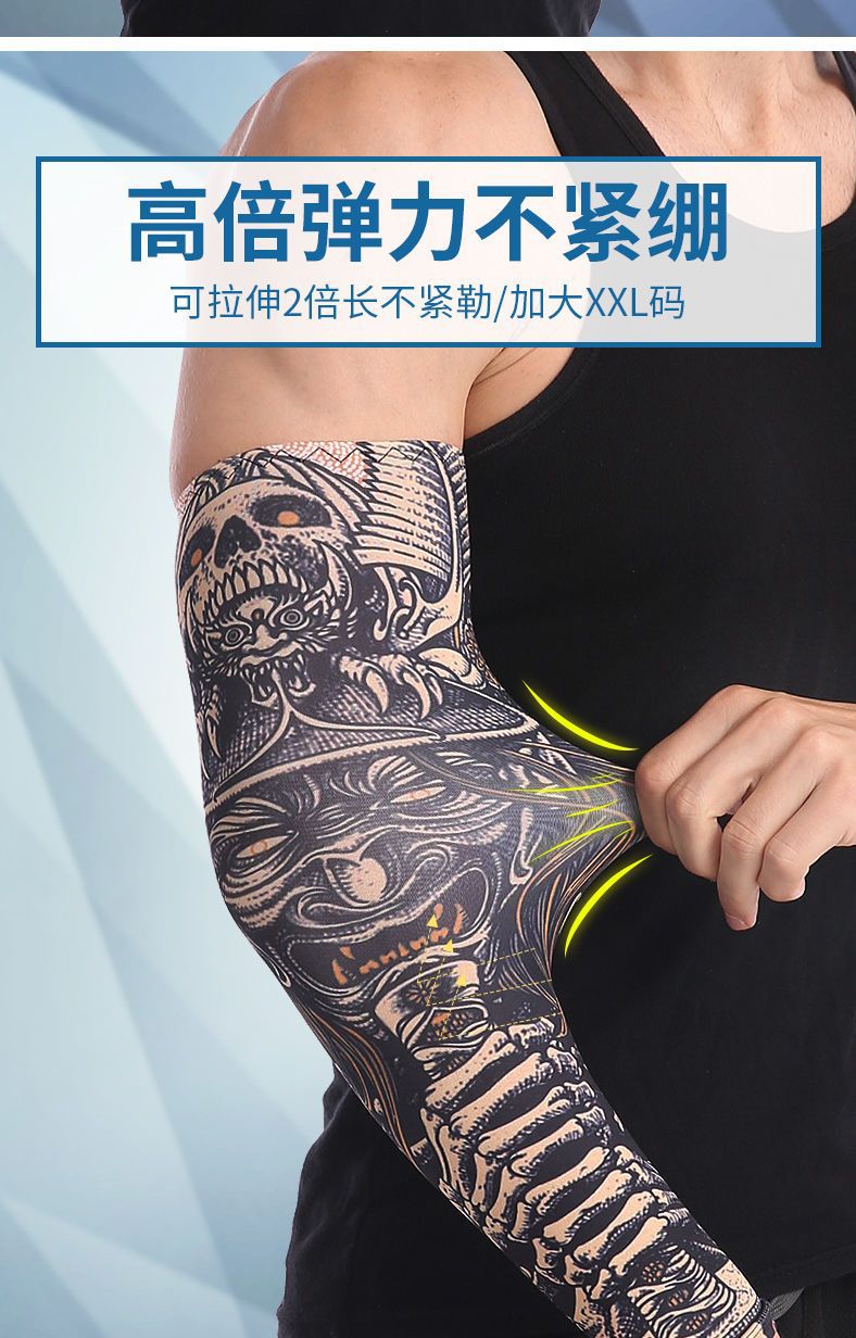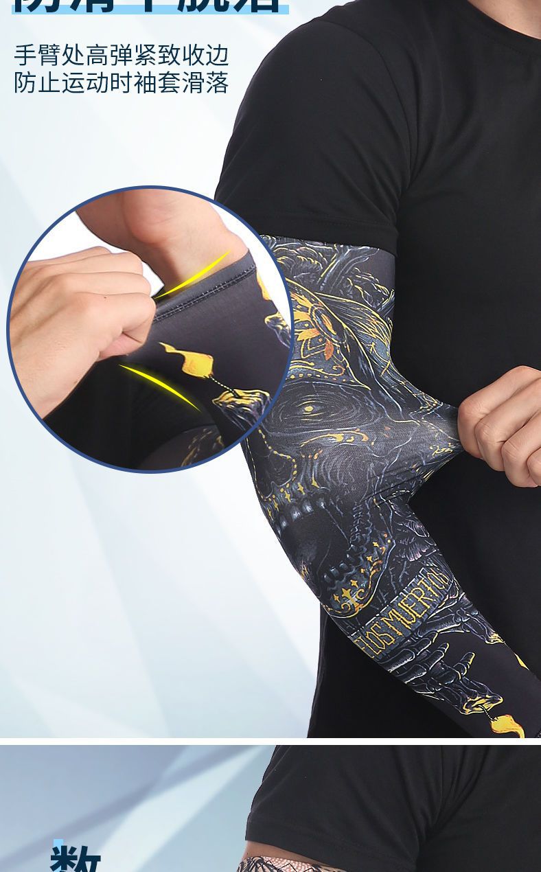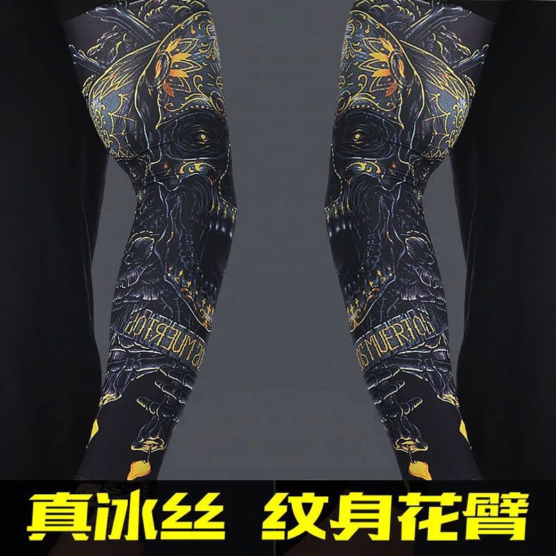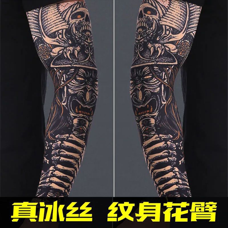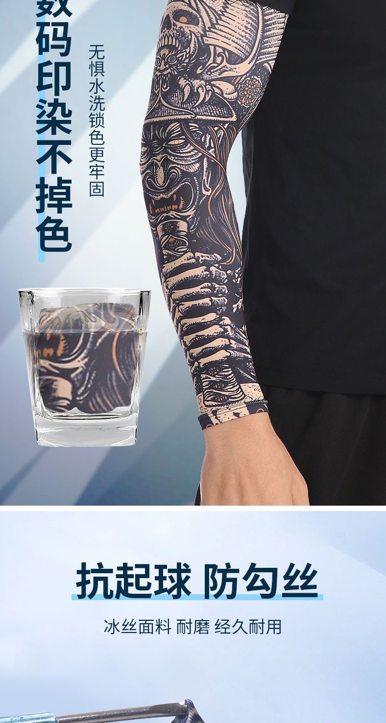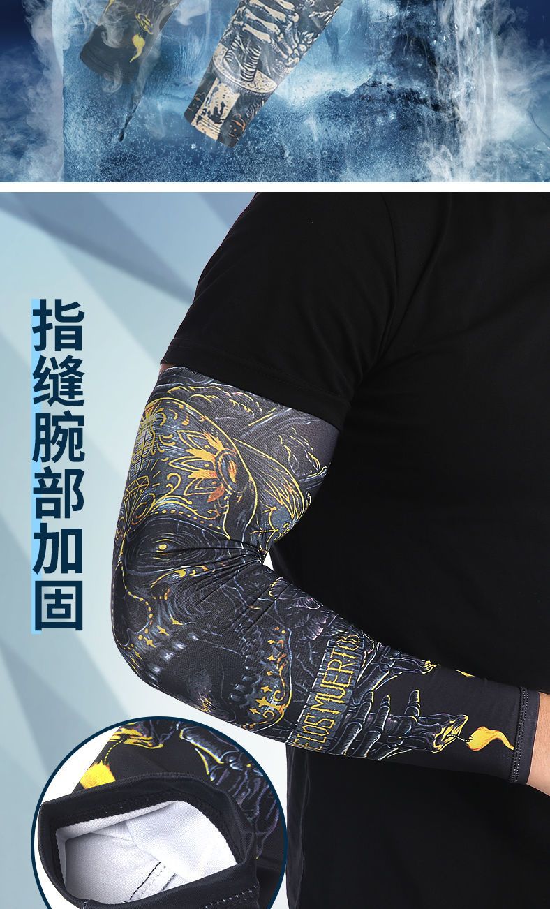 冰袖男士纹身袖套冰丝开车大码防晒套袖钓鱼骑行护臂夏冰爽手臂套
