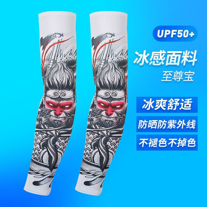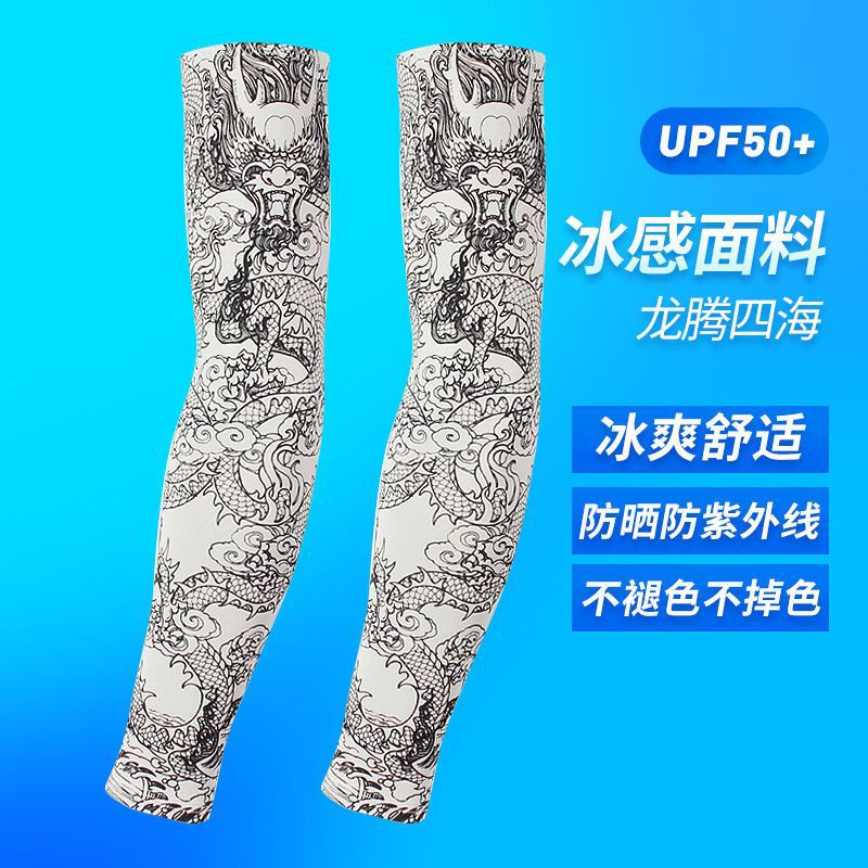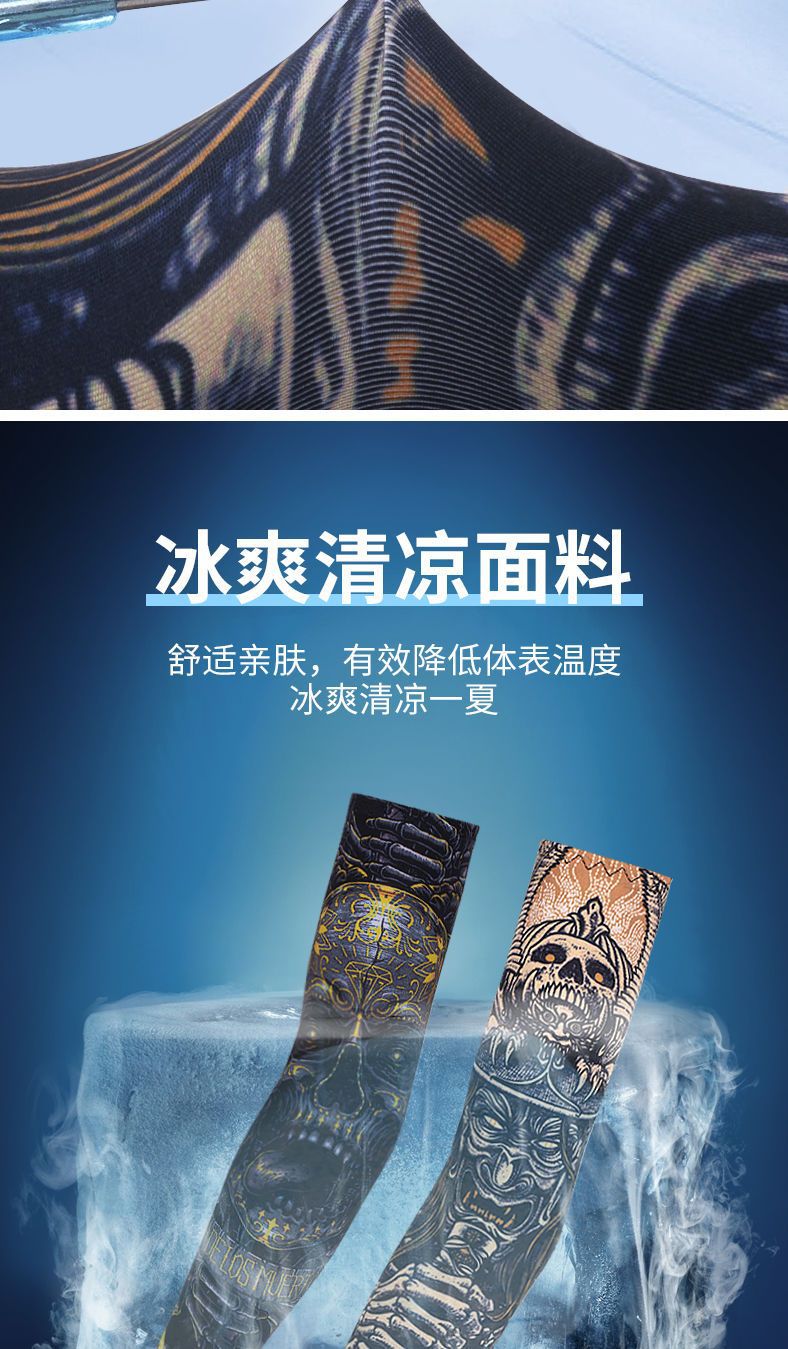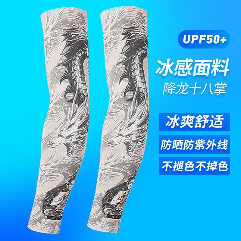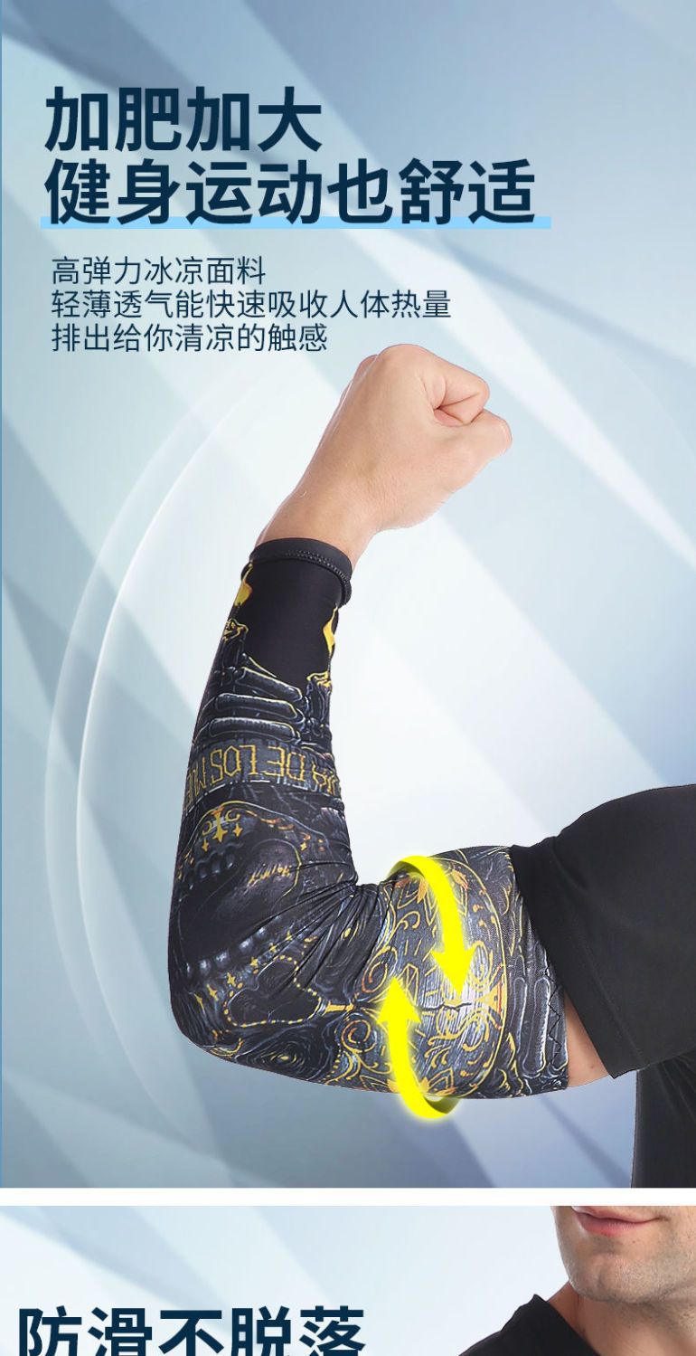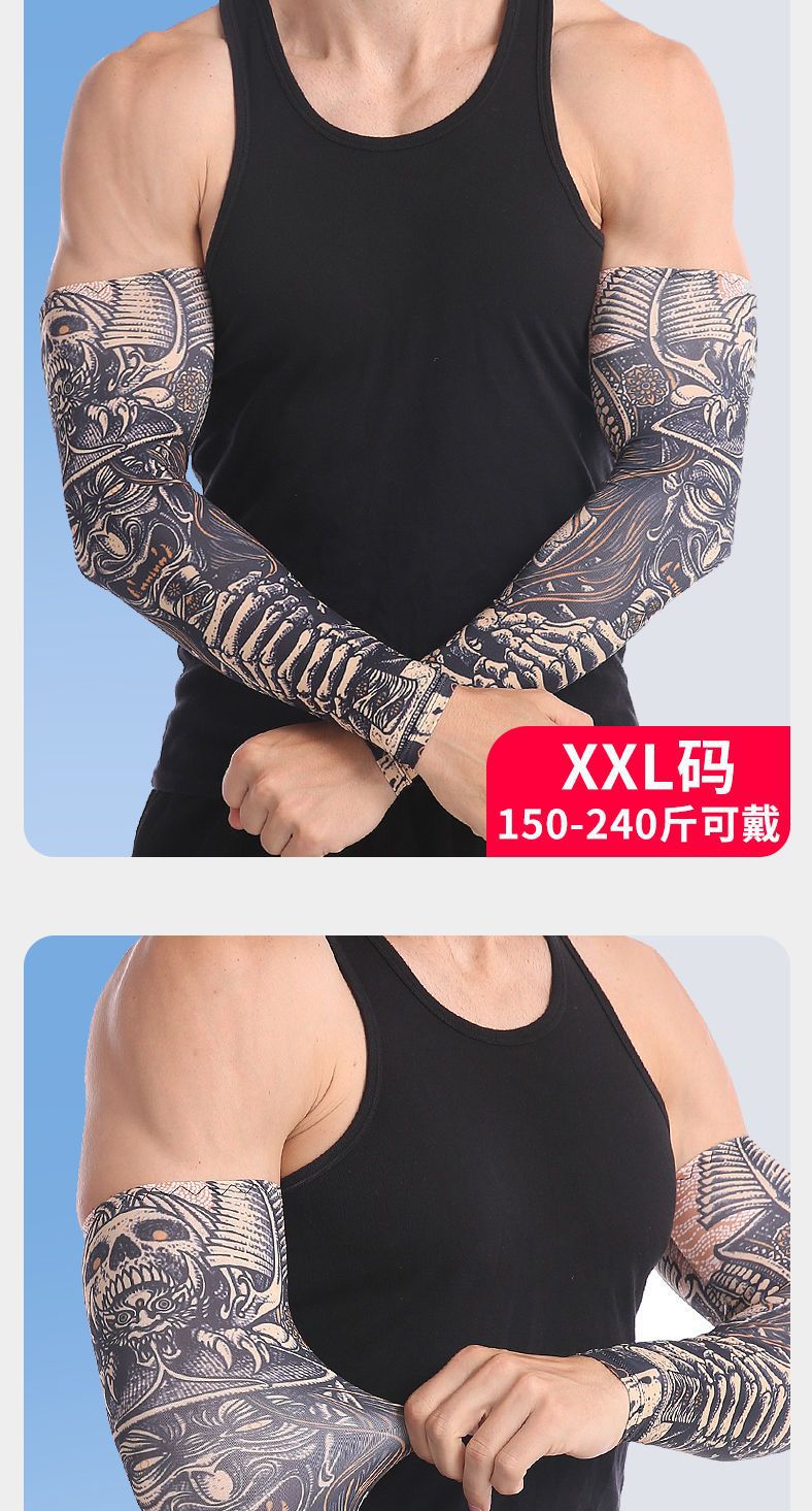 冰袖男士纹身袖套冰丝开车大码防晒套袖钓鱼骑行护臂夏冰爽手臂套