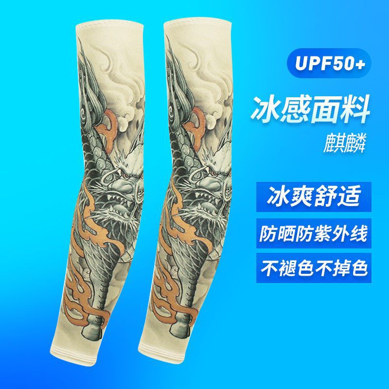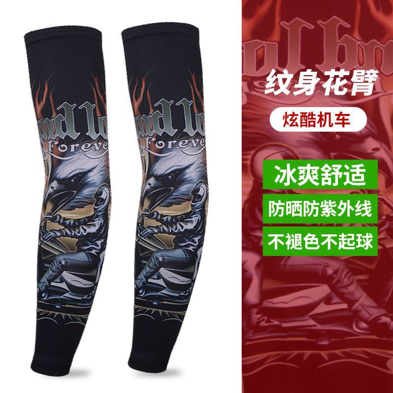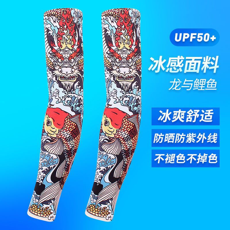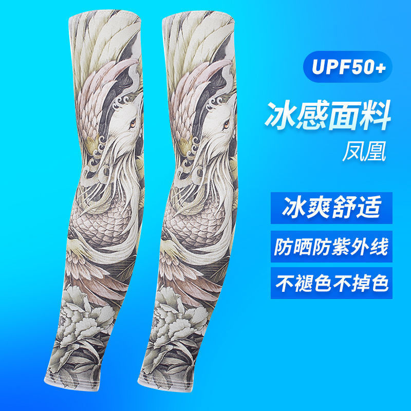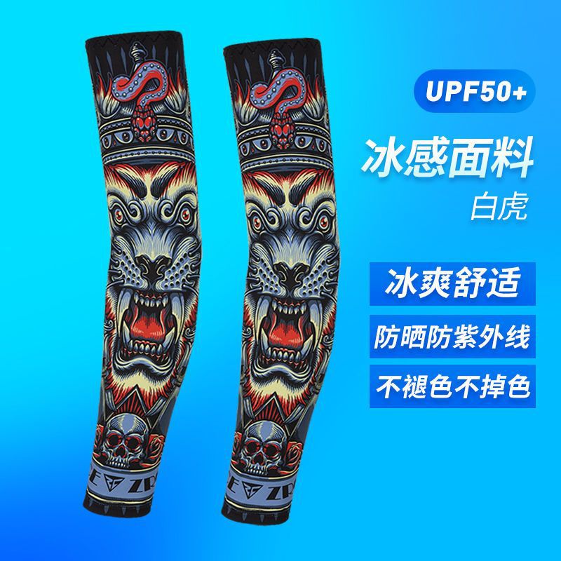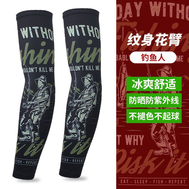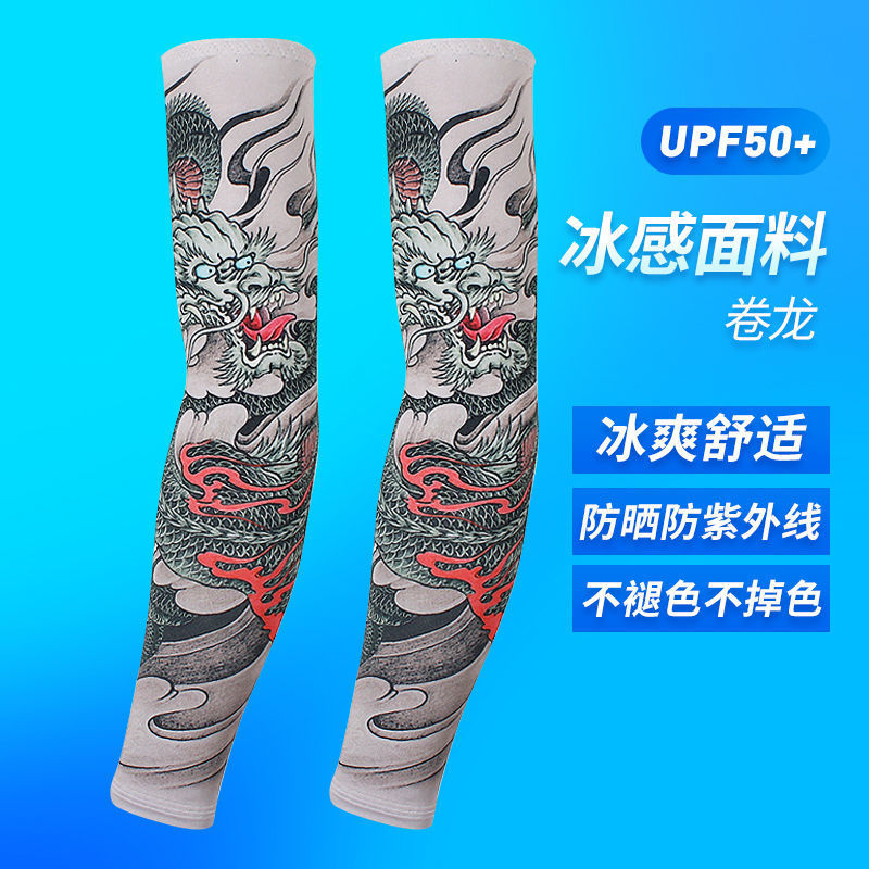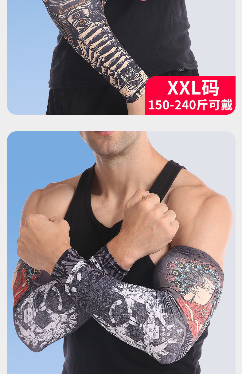 冰袖男士纹身袖套冰丝开车大码防晒套袖钓鱼骑行护臂夏冰爽手臂套