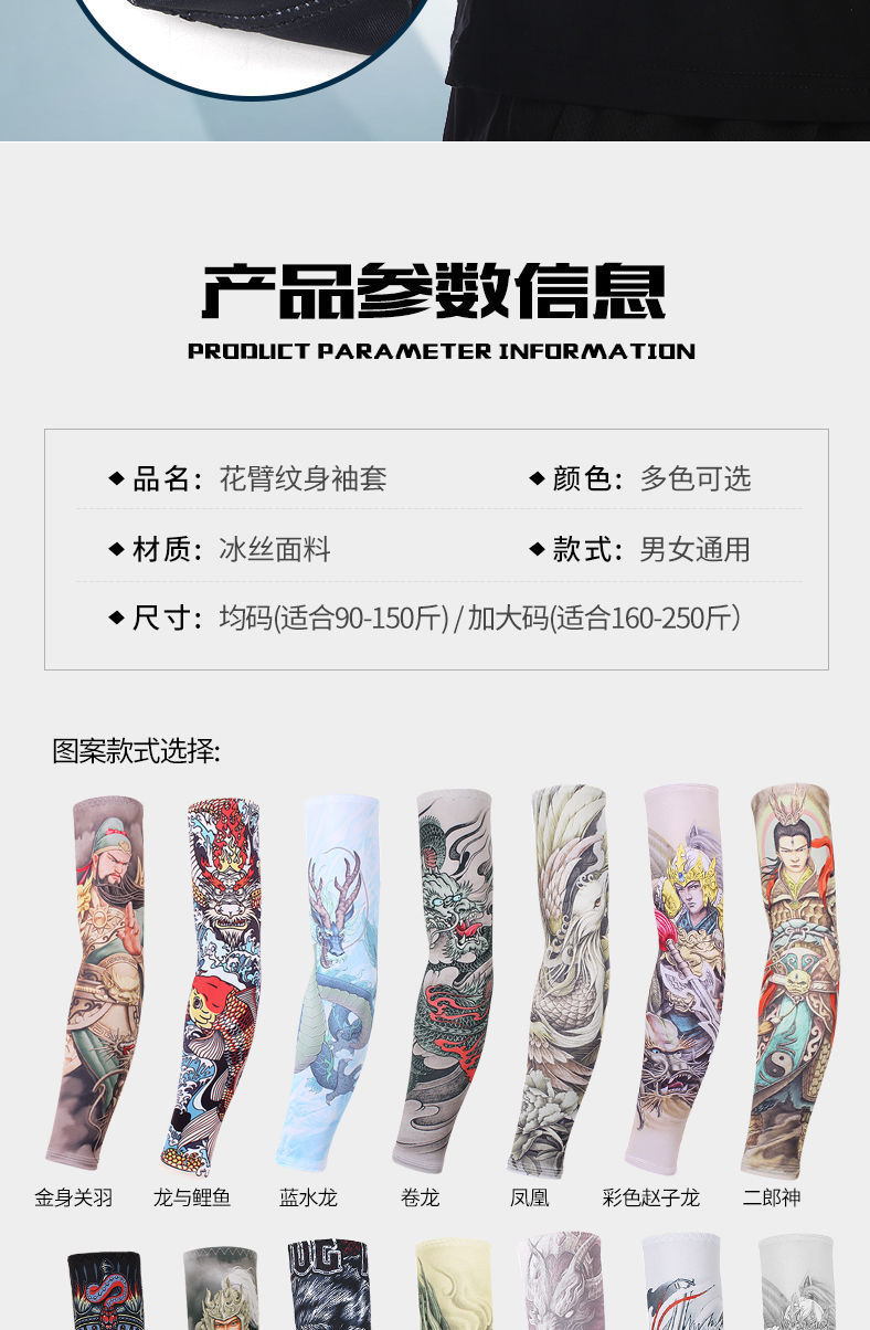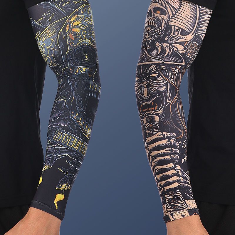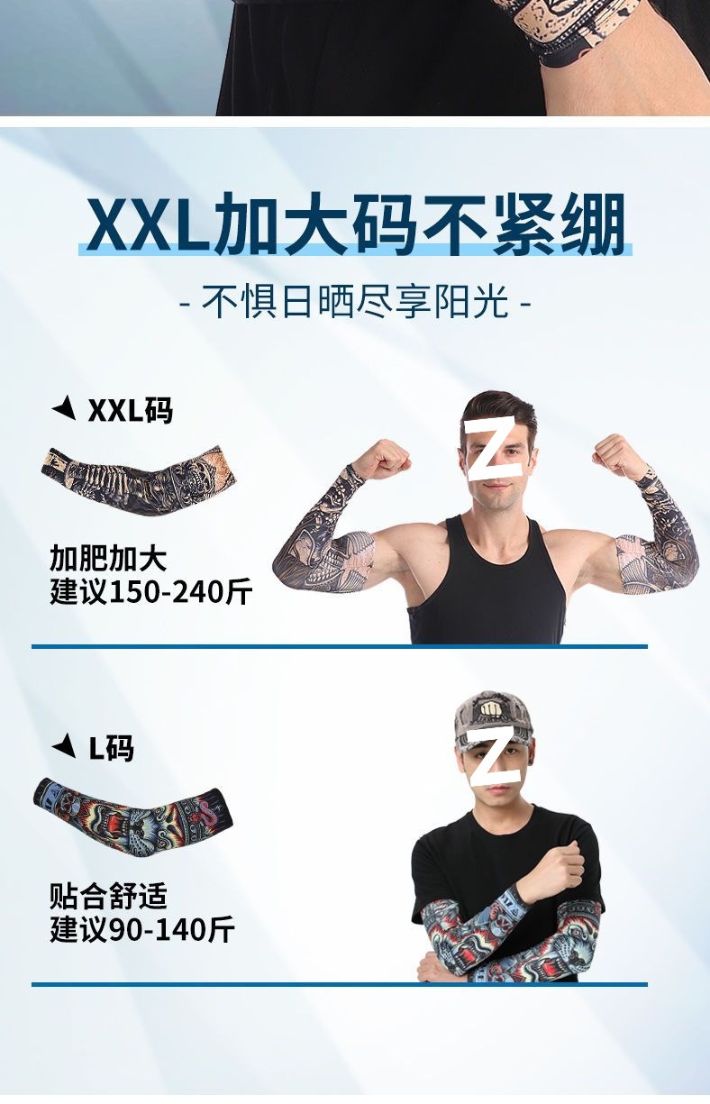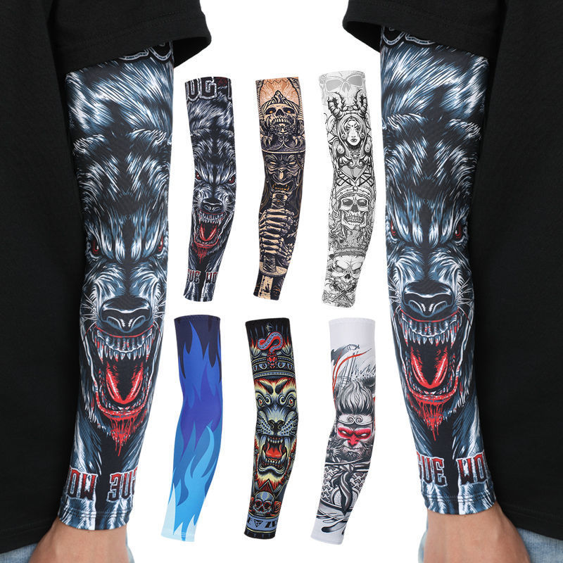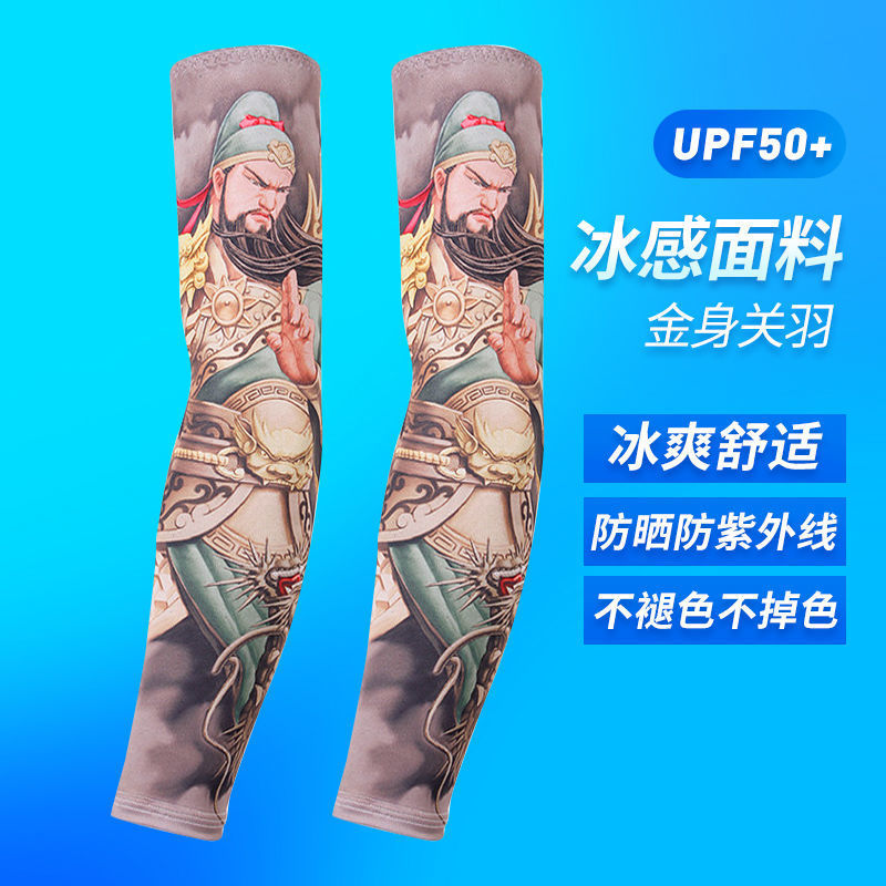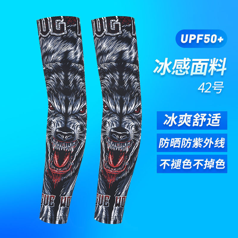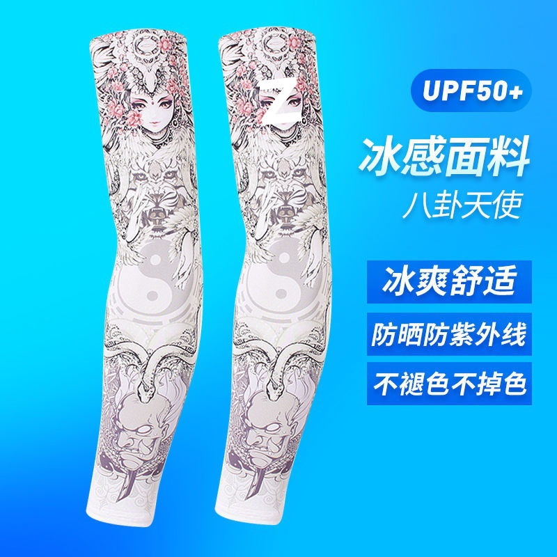 冰袖男士纹身袖套冰丝开车大码防晒套袖钓鱼骑行护臂夏冰爽手臂套