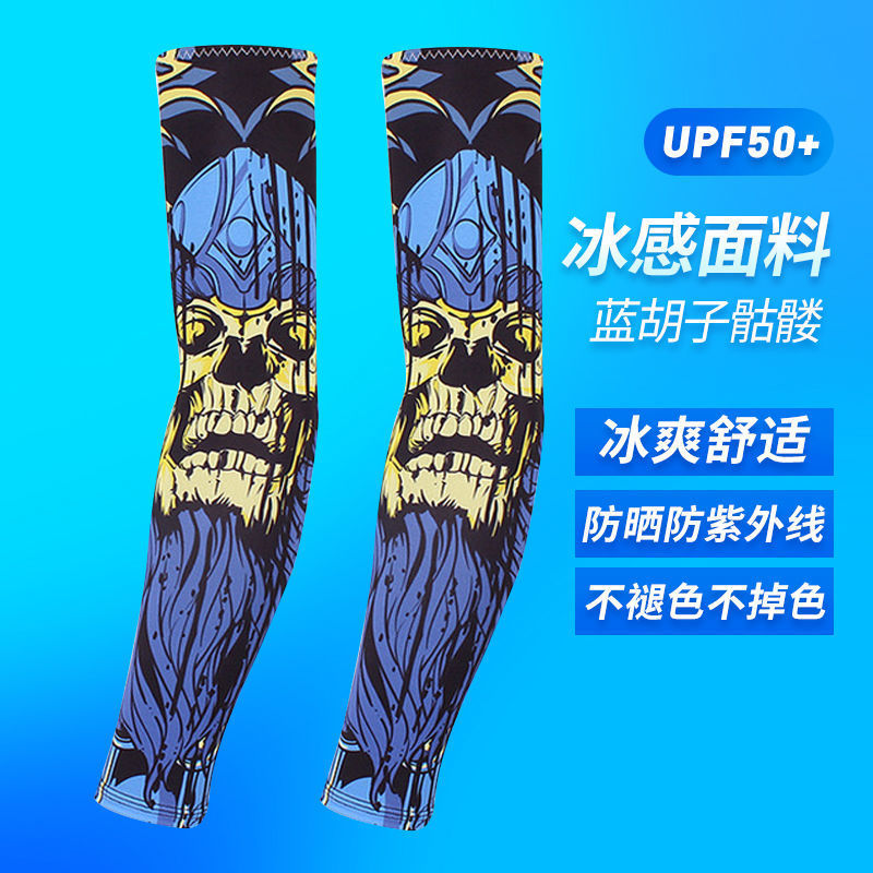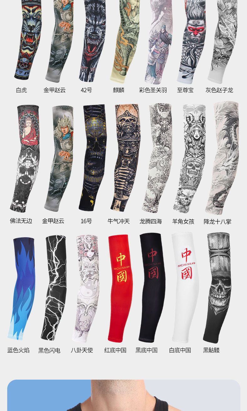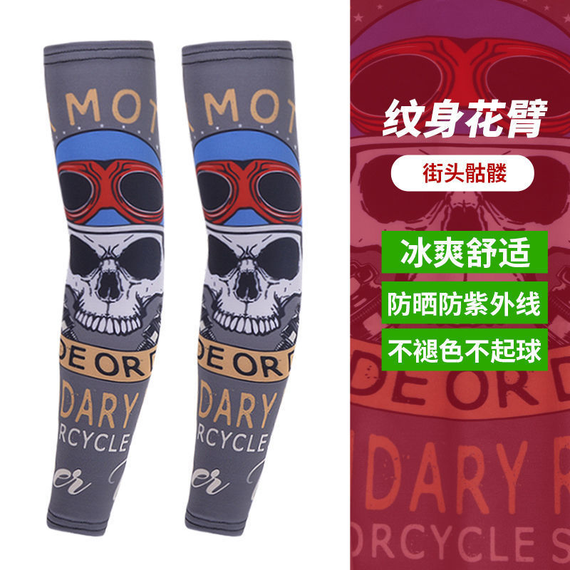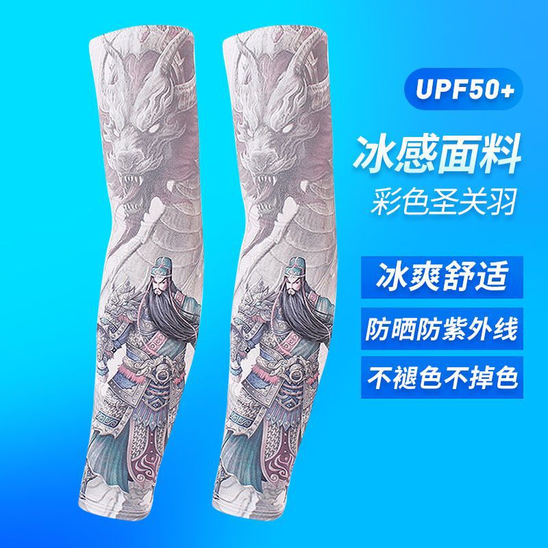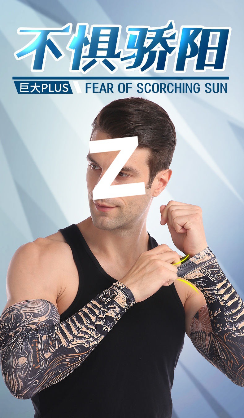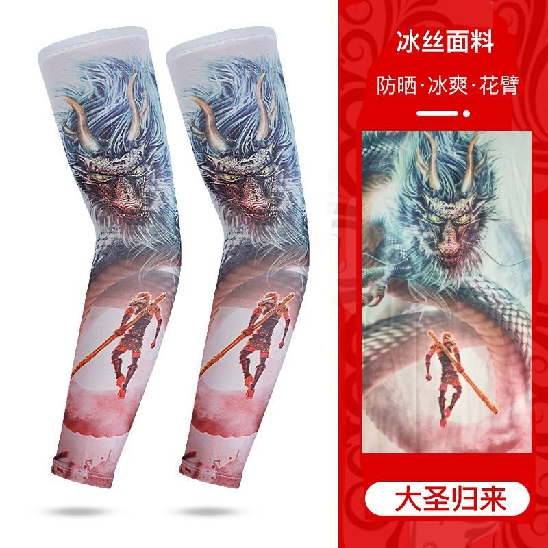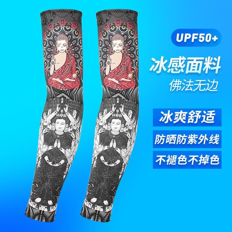 冰袖男士纹身袖套冰丝开车大码防晒套袖钓鱼骑行护臂夏冰爽手臂套