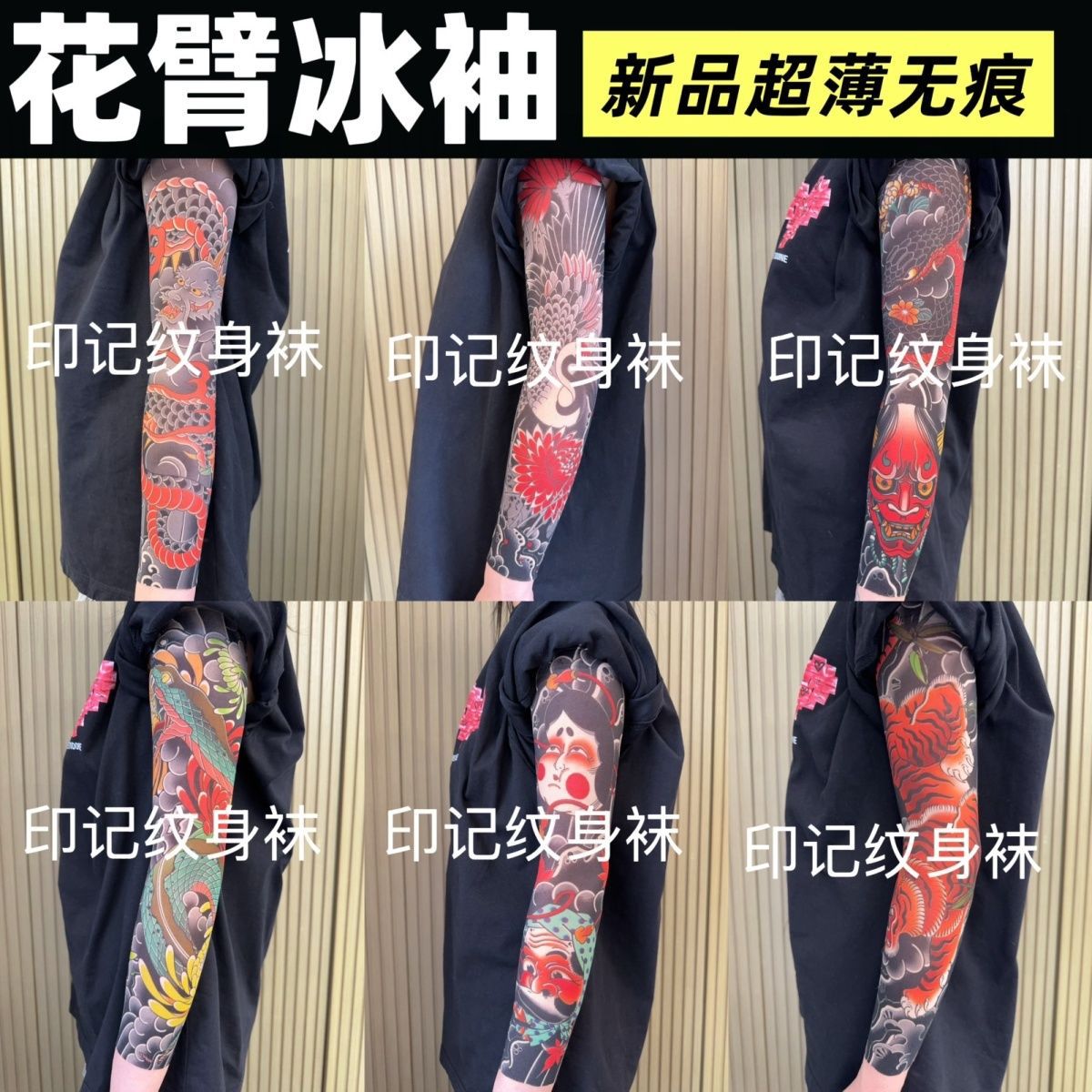 (一双)纹身花臂冰袖超薄无痕防晒套袖夏季骑行护臂源头厂家批发