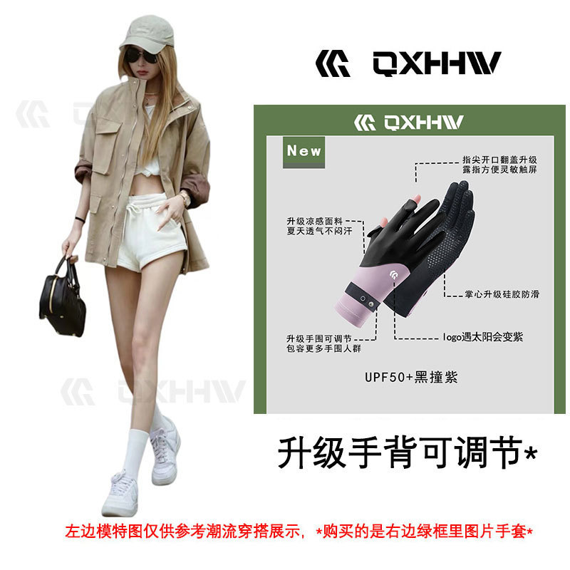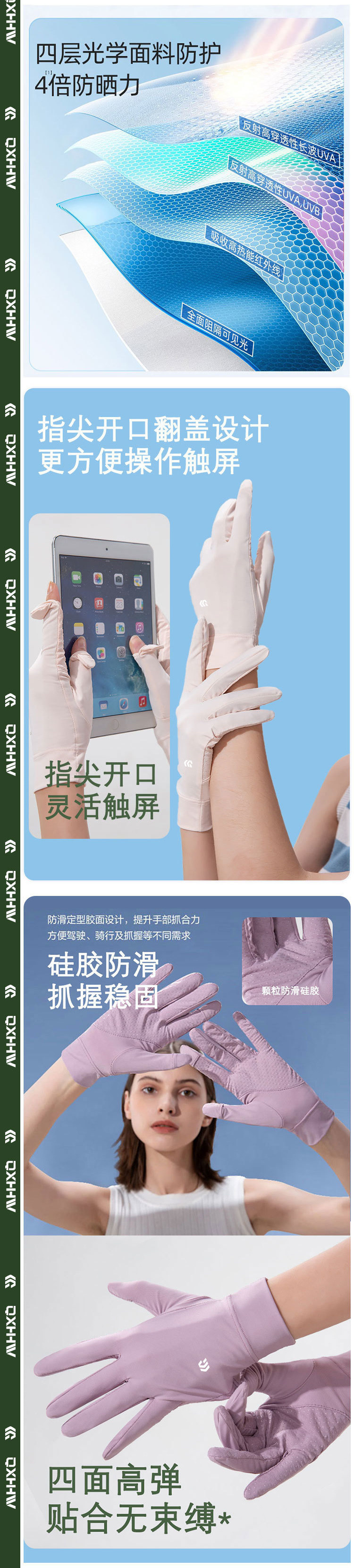 防晒手套女防紫外线薄款夏季冰丝防滑可触屏手袖骑行防晒袖套893