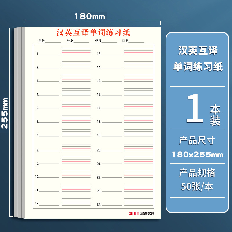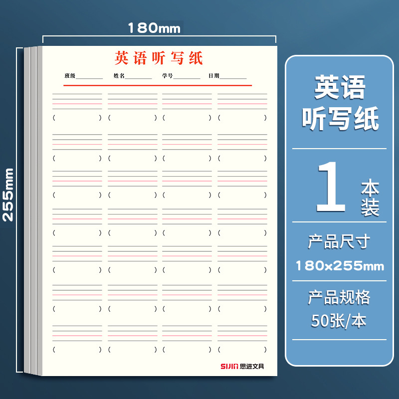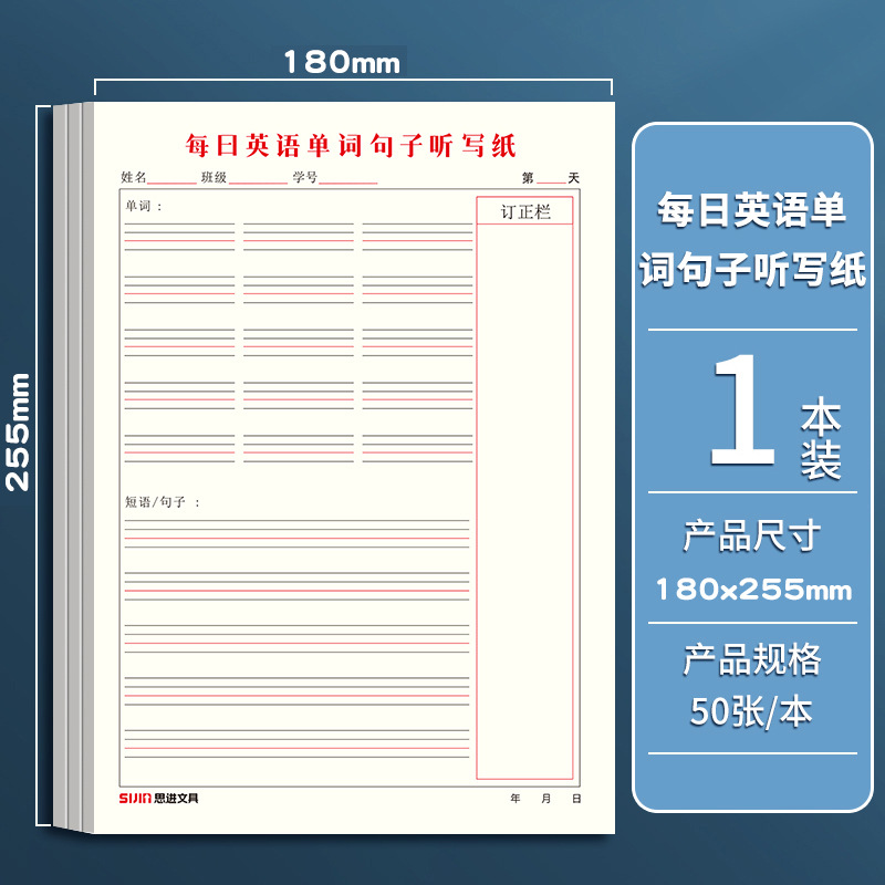英语听写纸加厚单词句子默写本英汉互译作业本英文听写本小学初中