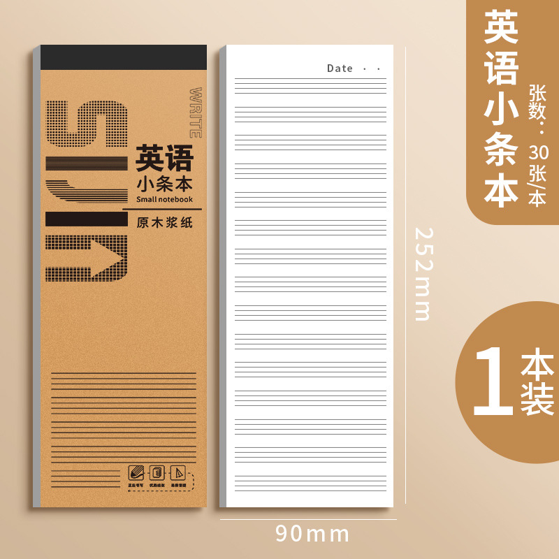 蓝小条本英文拍纸本学生用语文白纸笔记本牛皮加厚长条英语便签本