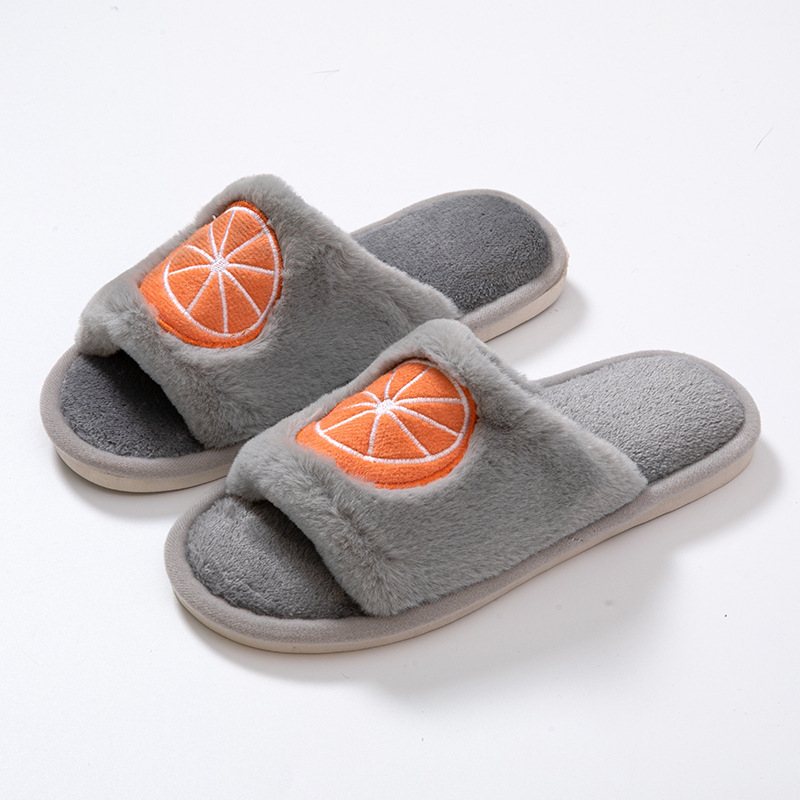 毛毛开口露趾刺绣草莓西瓜水果居家木地板仿兔毛跨境拖鞋毛茸茸