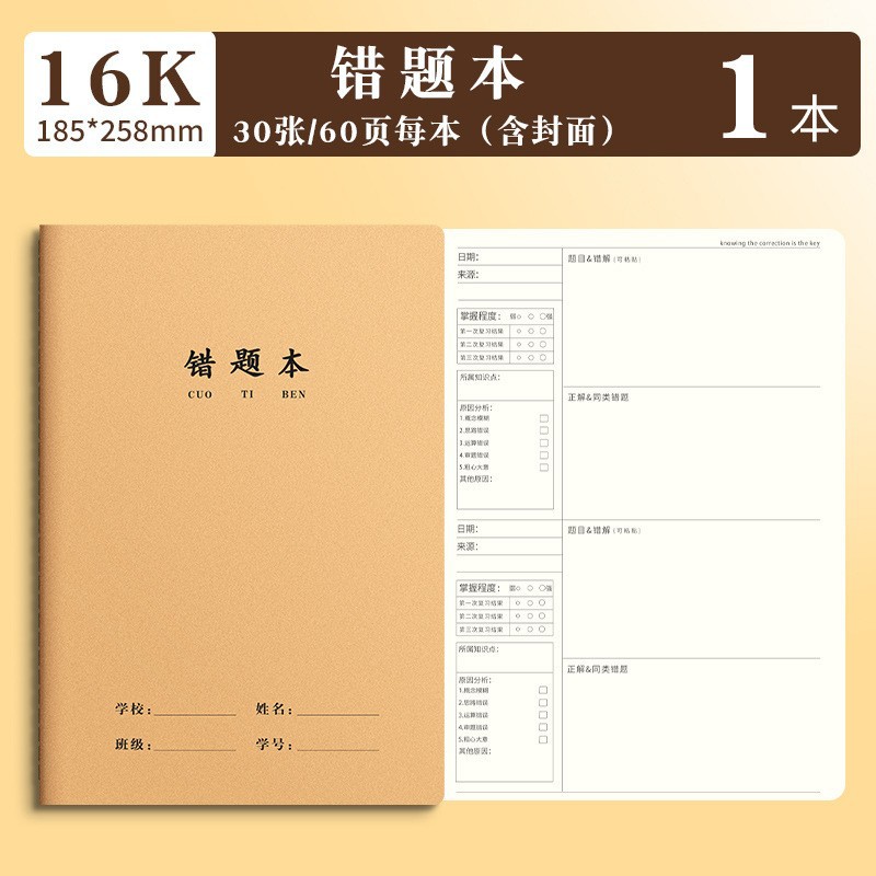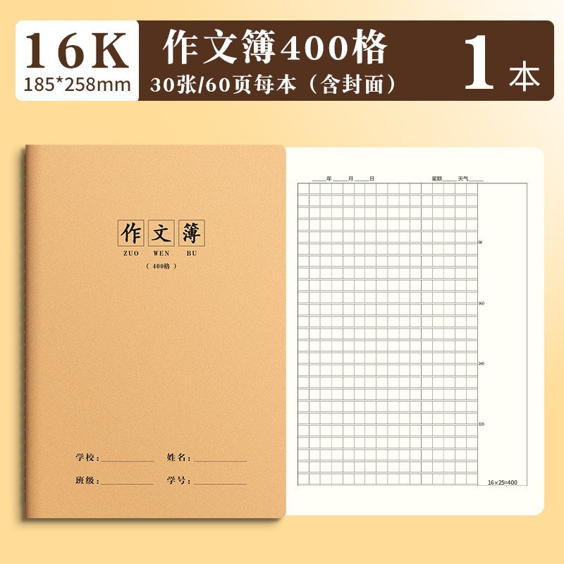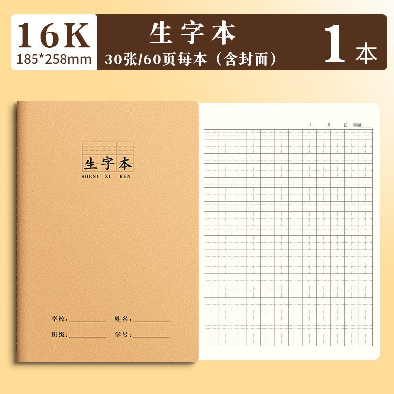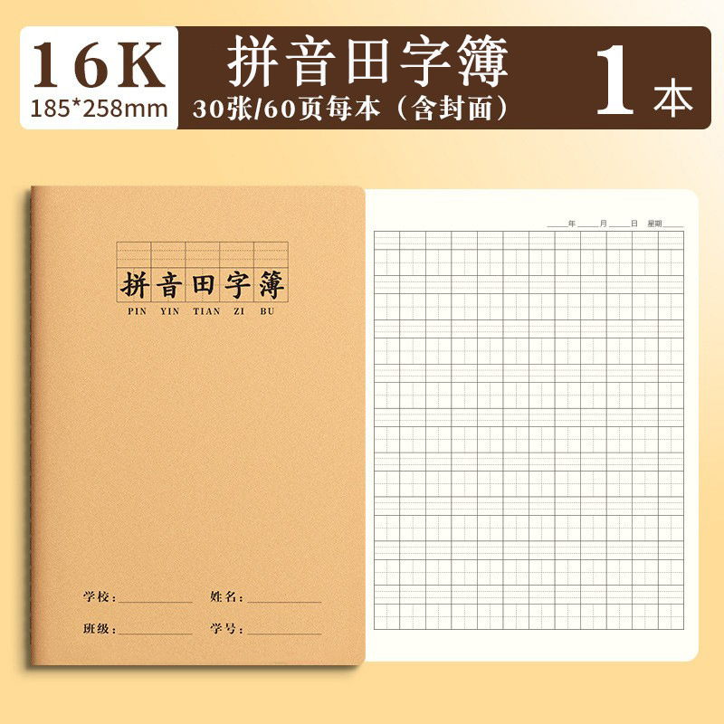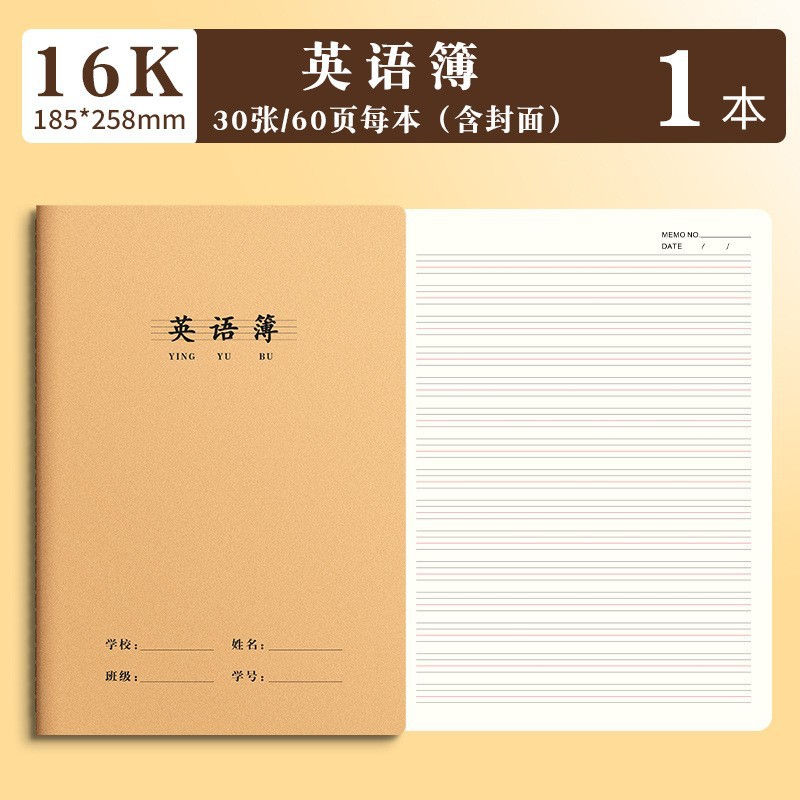 思进牛皮16K作业本批发 笔记本语文数学科目本拼音本作文本田字本