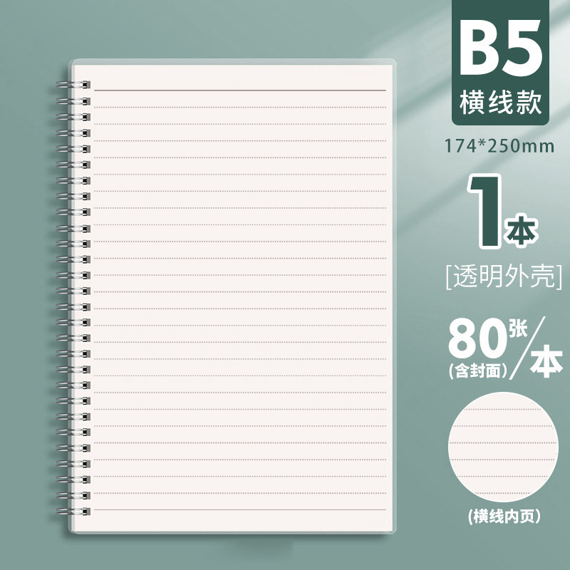 线圈本学生笔记本加厚透明pp线圈记事本b5横线方格日记本现货批发