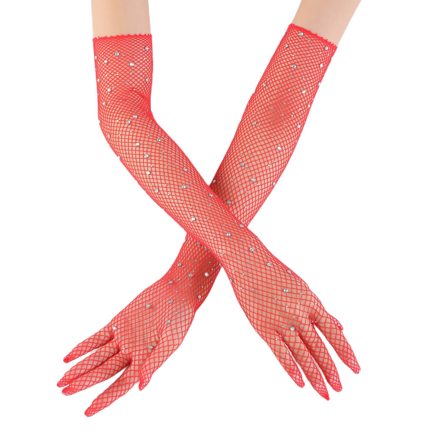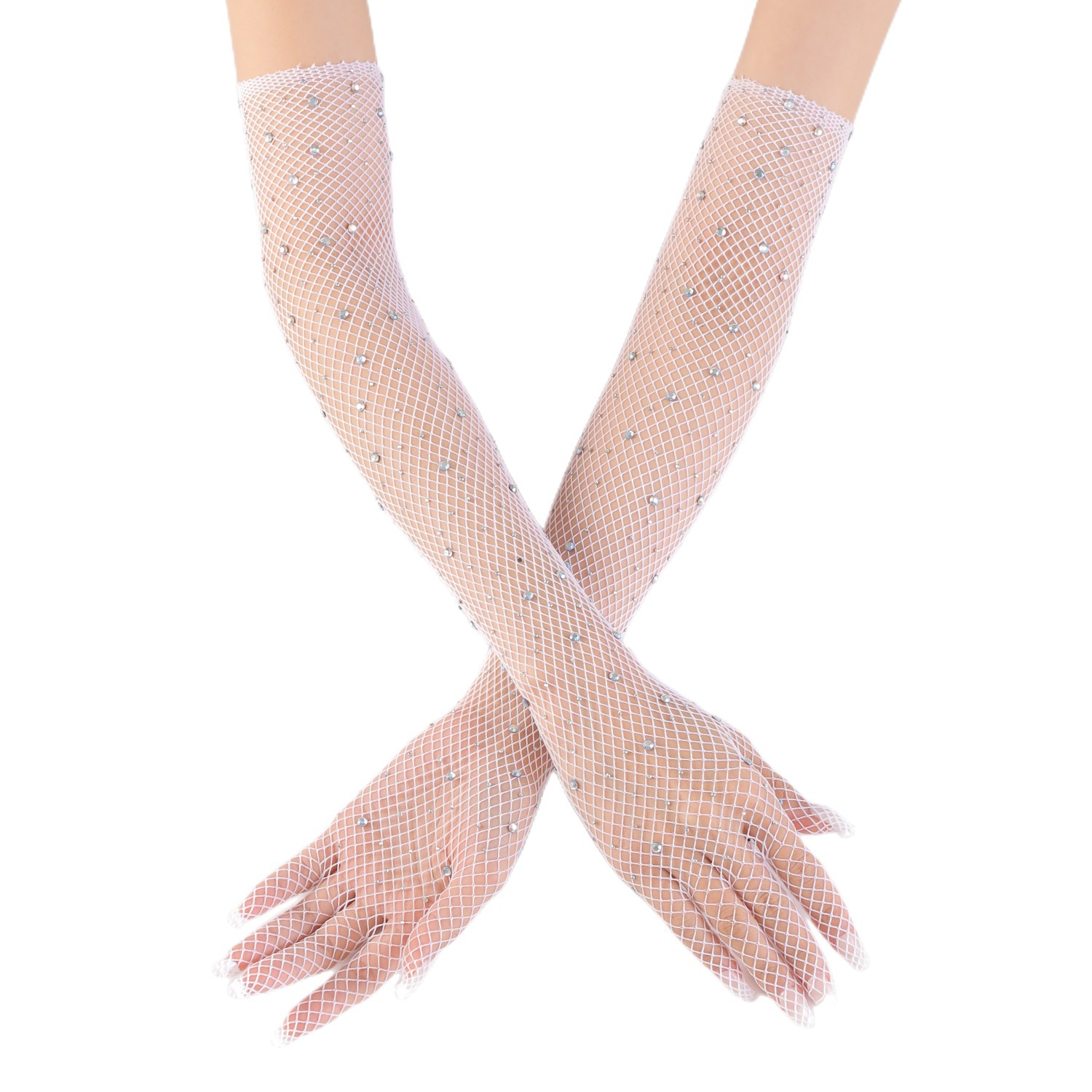 跨境新款防晒袖套幻彩烫钻渔网长筒手臂套女士长筒防晒手套