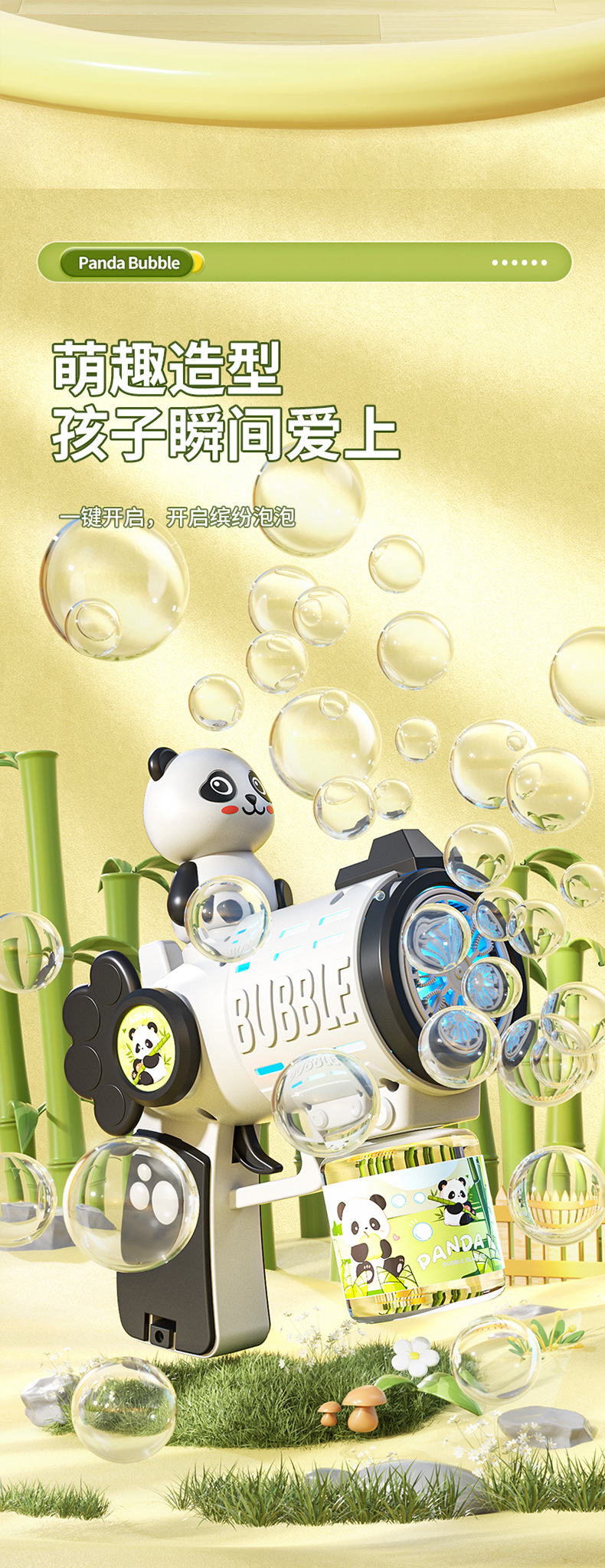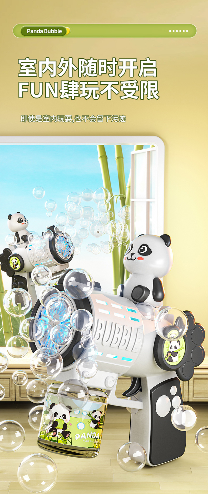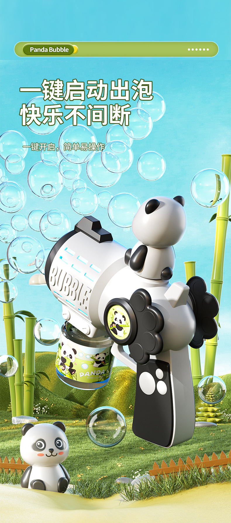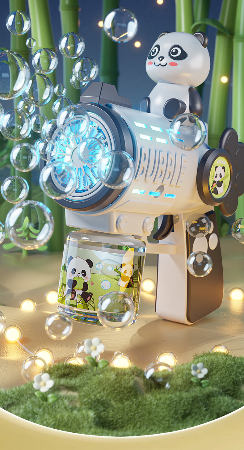 抖音爆款40孔泡泡枪熊猫泡泡机电动手持泡泡机儿童泡泡玩具批发