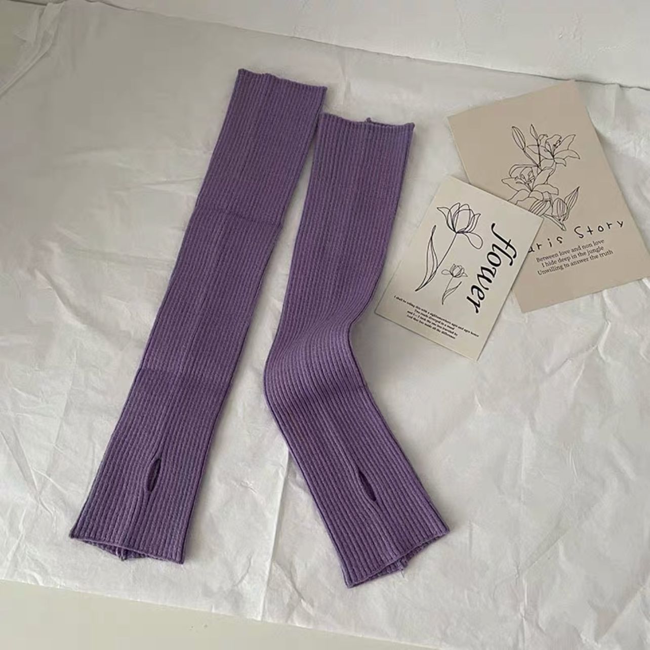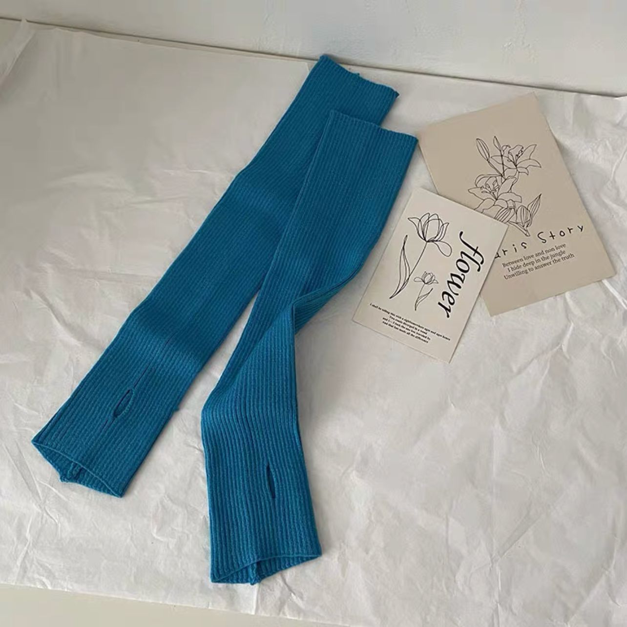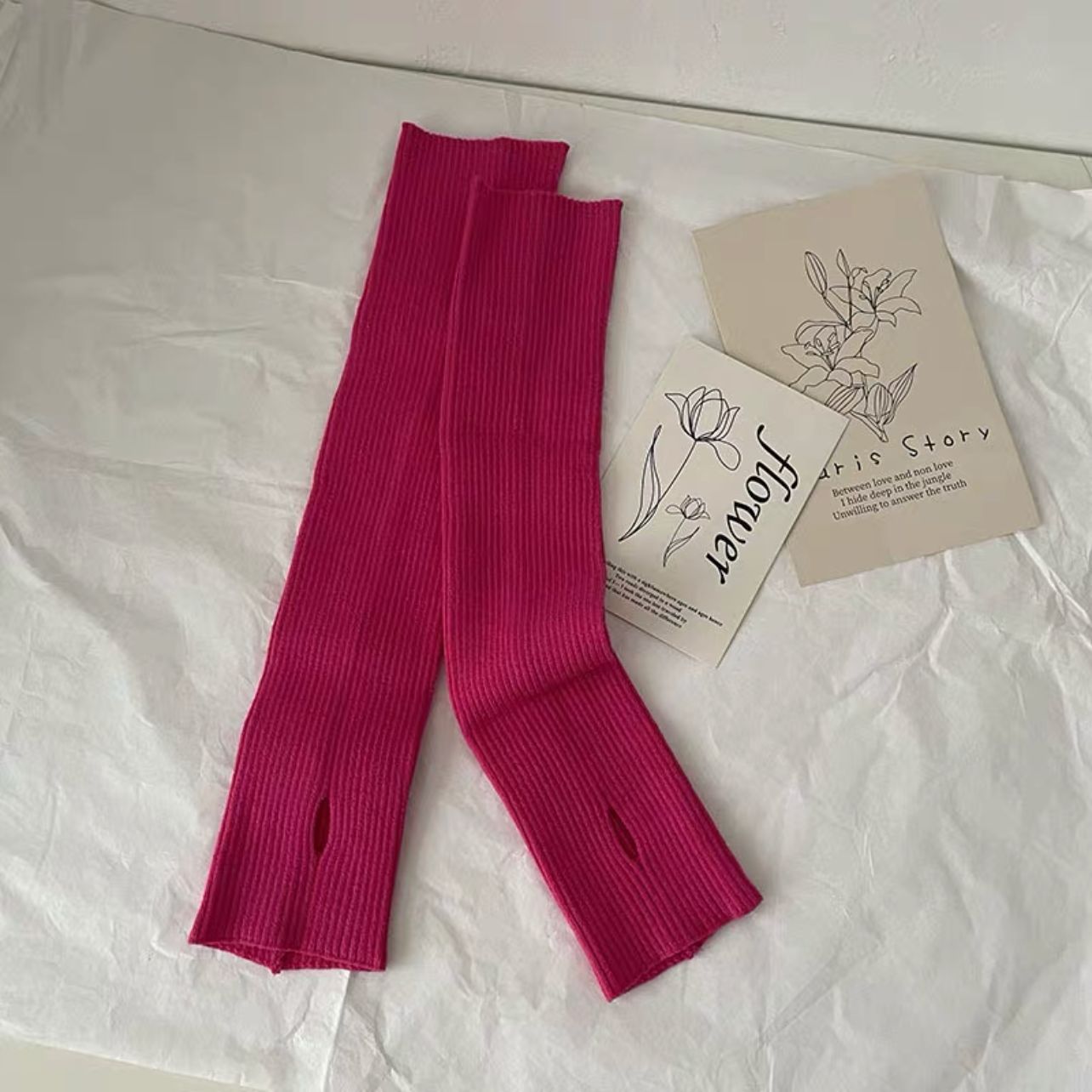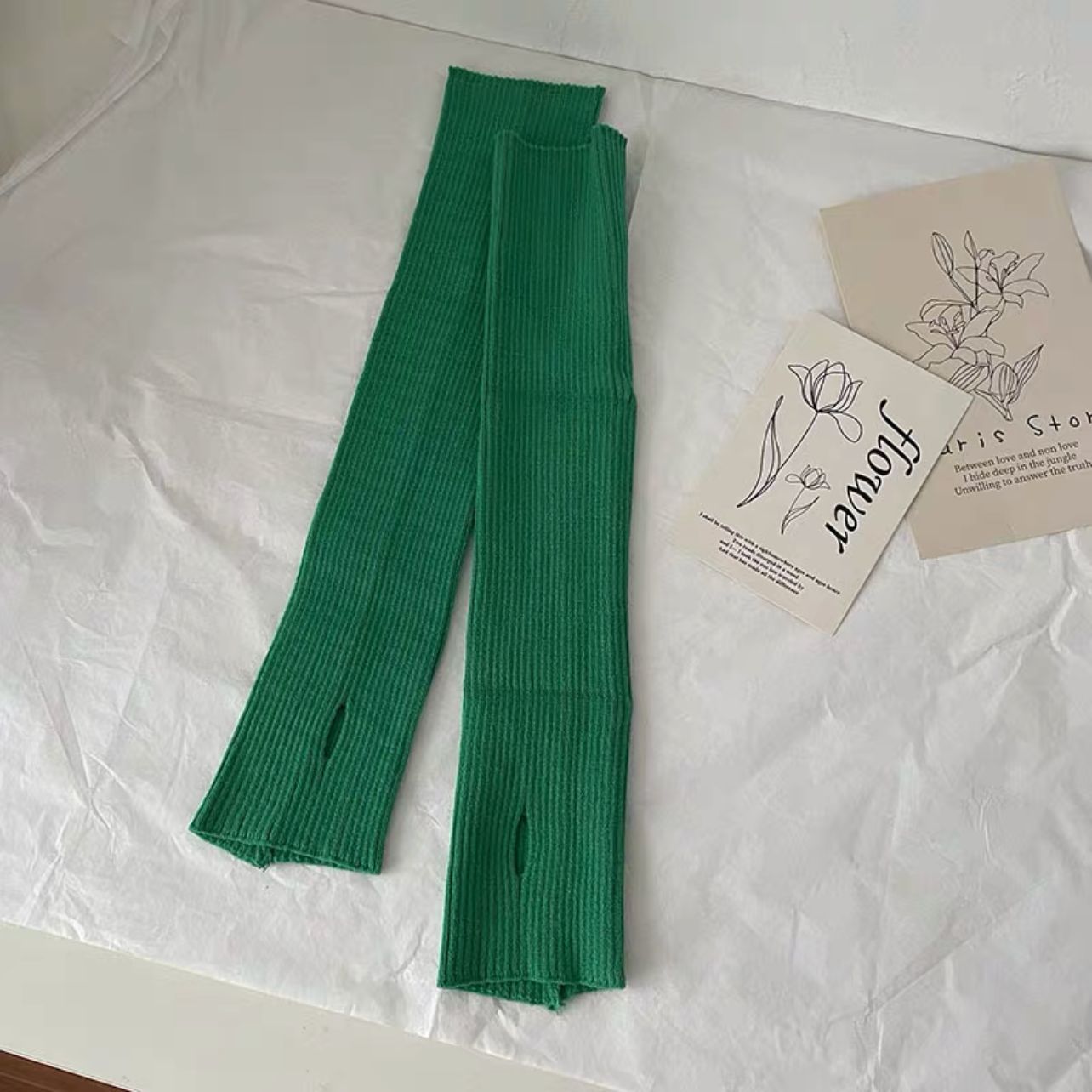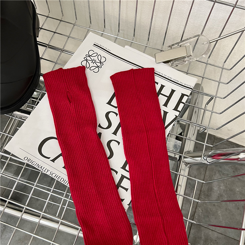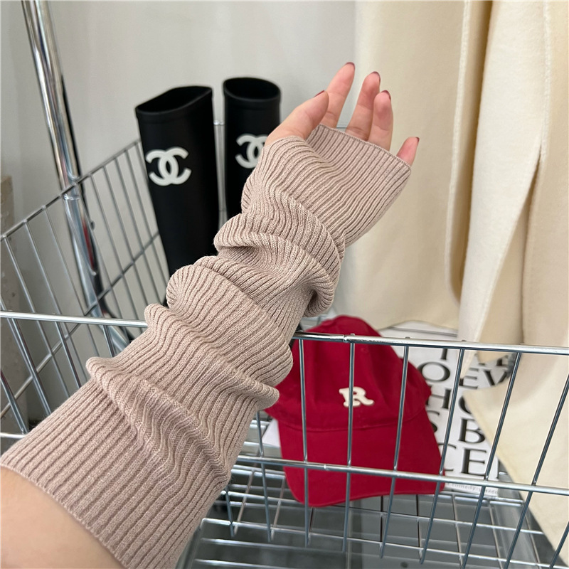 针织手套袖套女秋冬季酷保暖白色套袖手袖护腕毛衣毛线半指手臂套