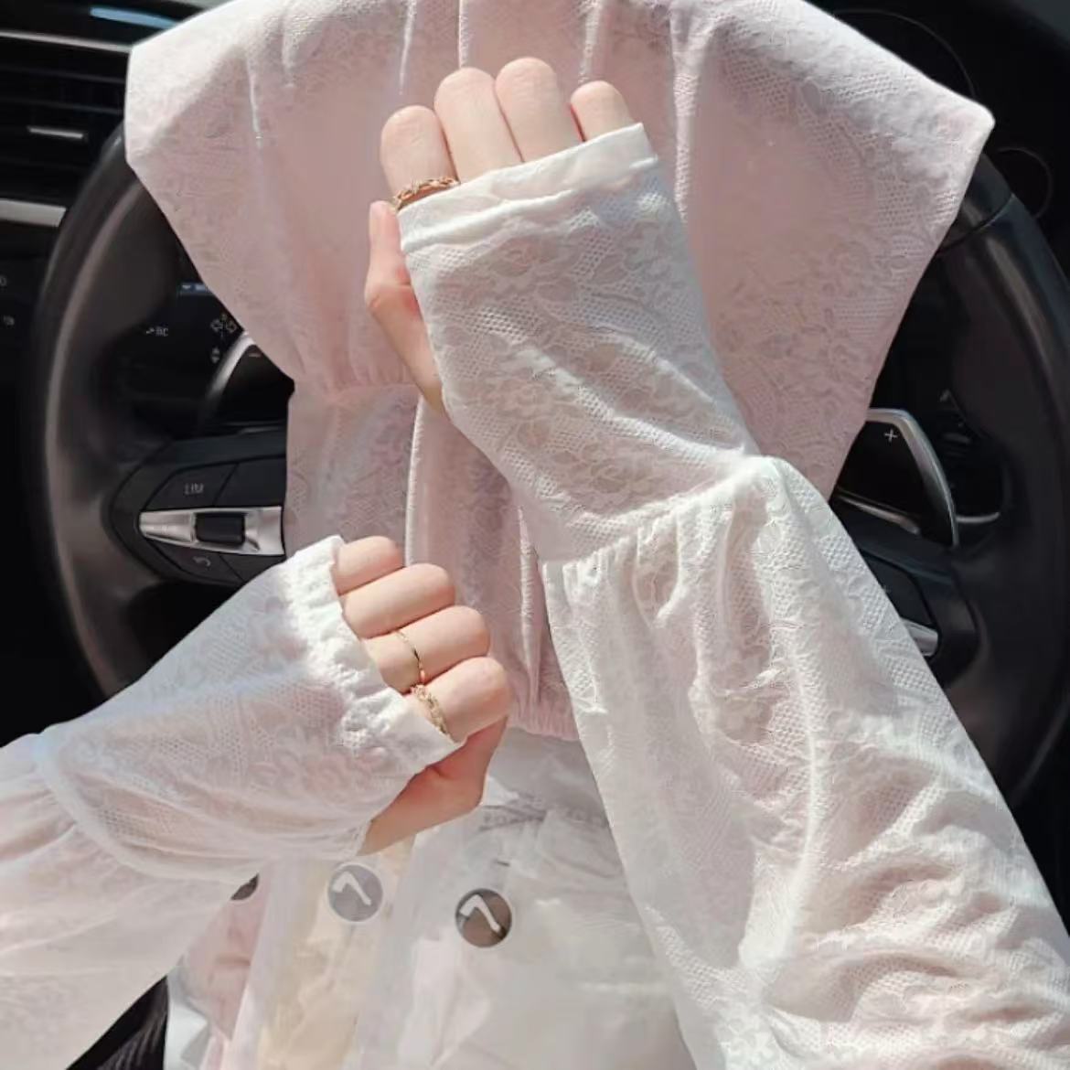 夏薄款高弹宽松蕾丝防晒冰袖新款温柔仙女风透气舒适凉爽冰丝袖套