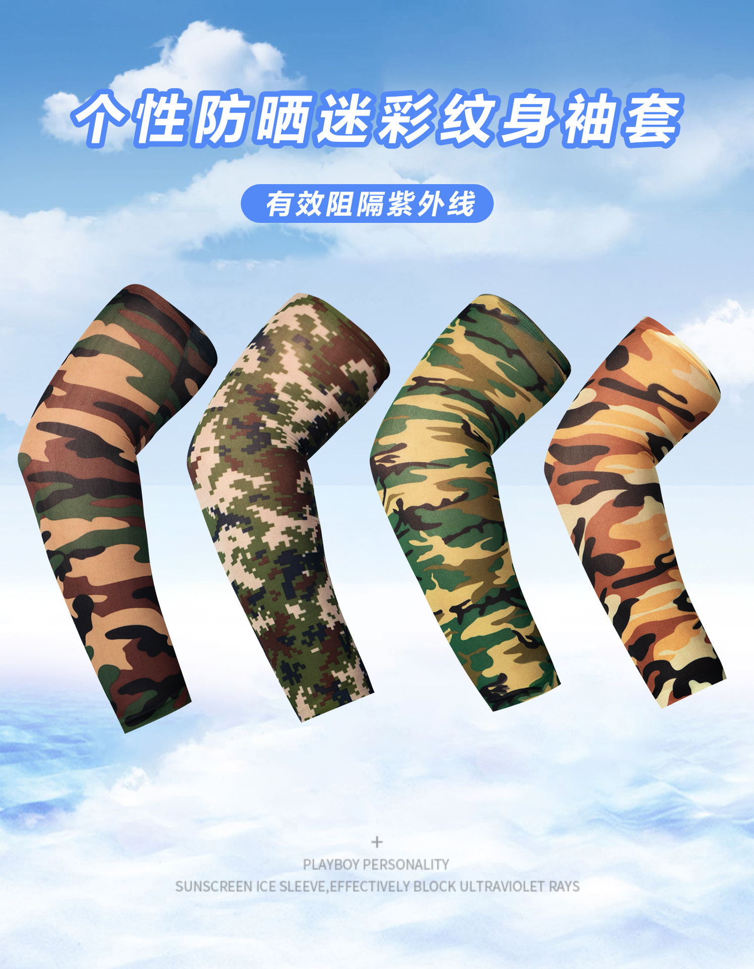 迷彩冰丝护臂夏季冰袖冰丝防晒袖套男女户外防紫外线透气护臂