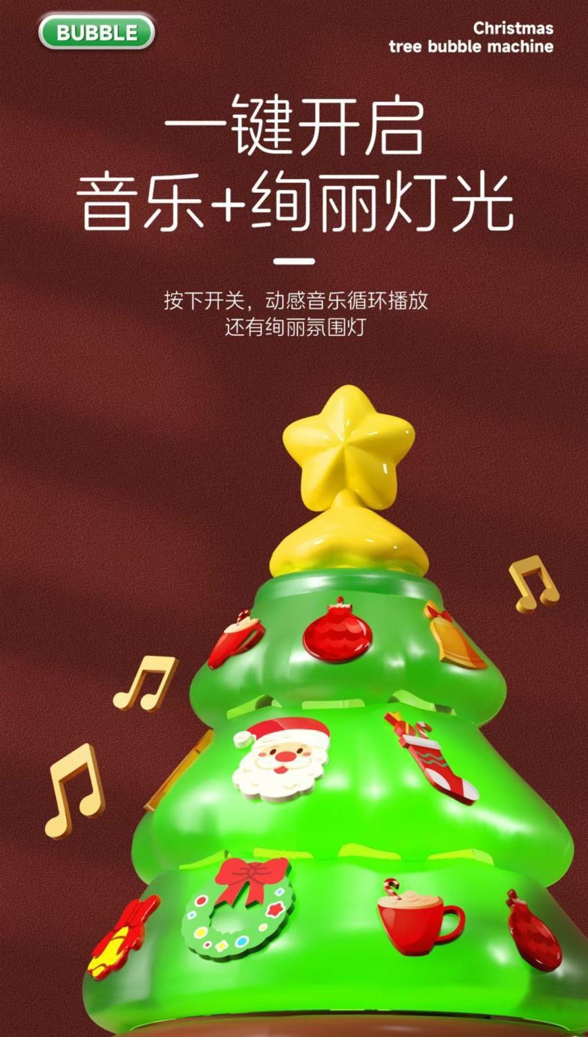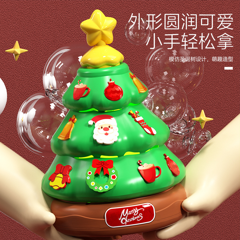 圣诞树泡泡机八音乐盒玩具旋转灯光DIY贴纸雪人女生礼物批发 厂家