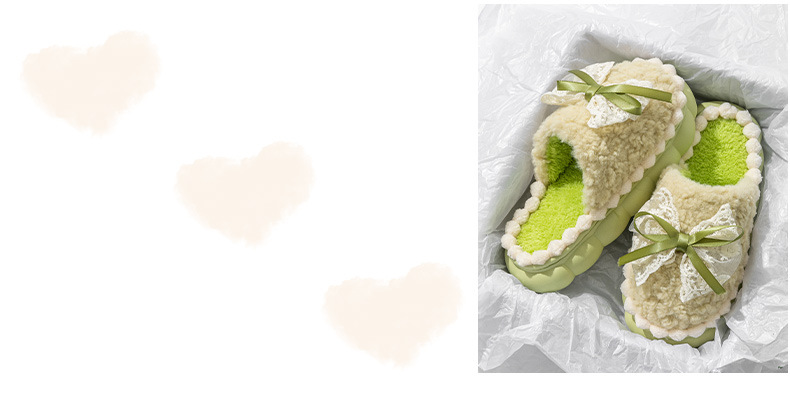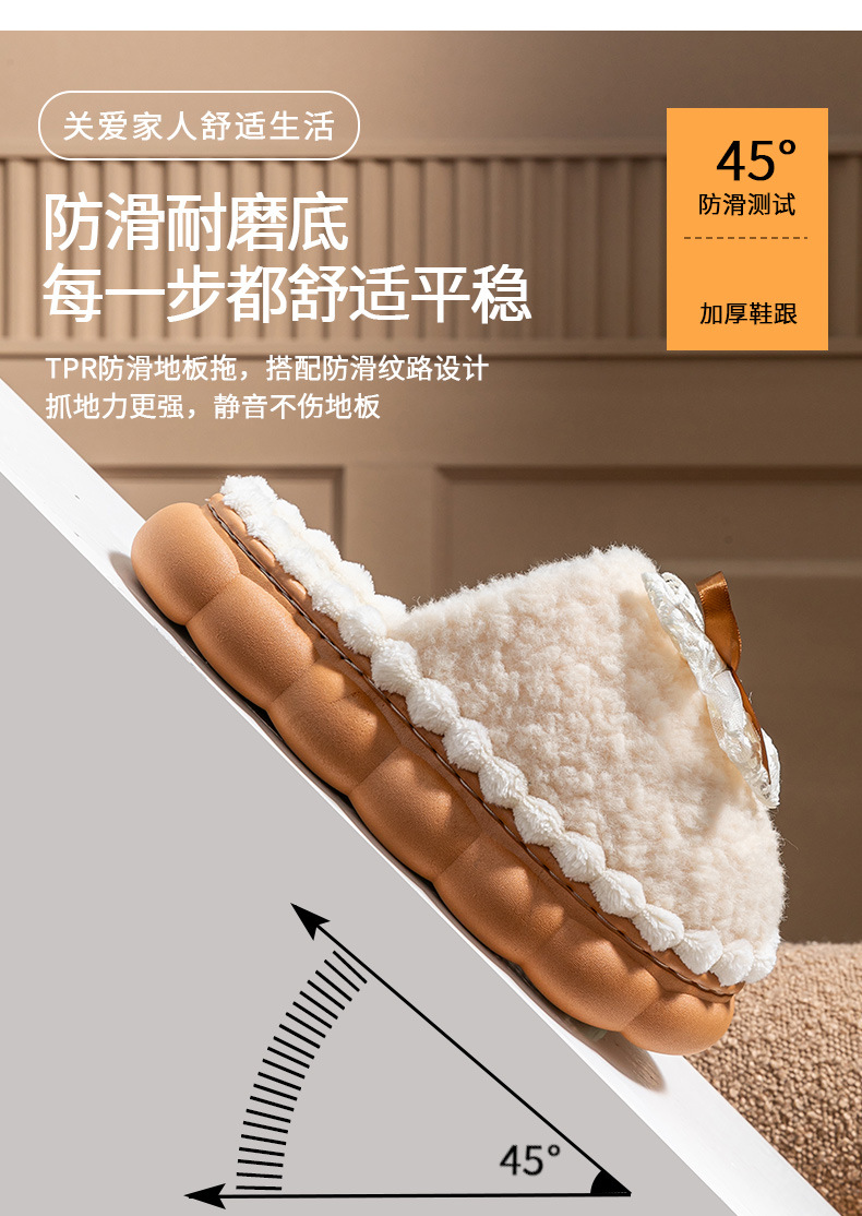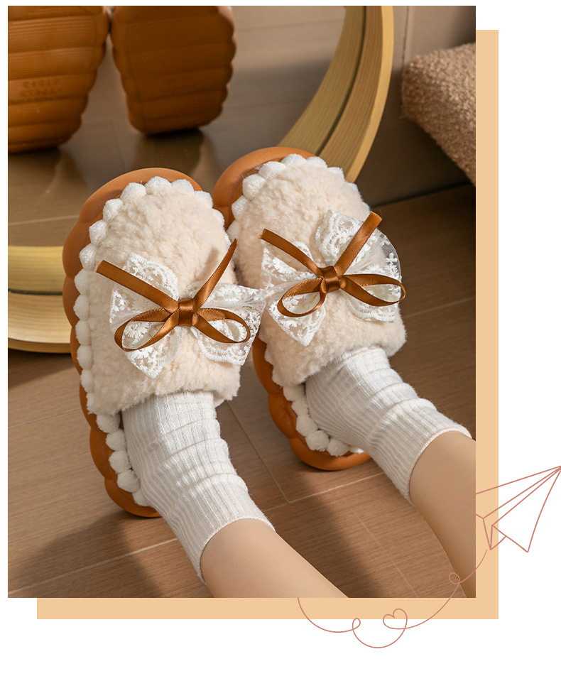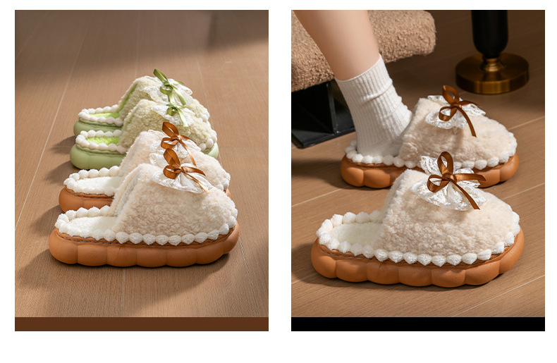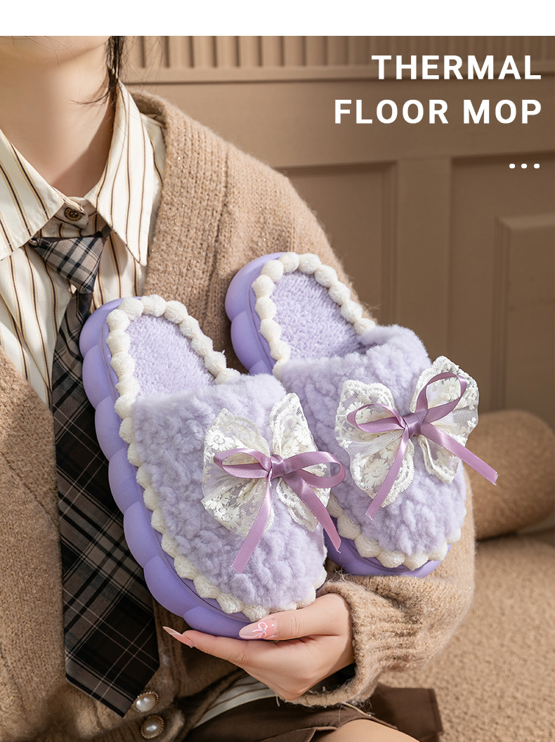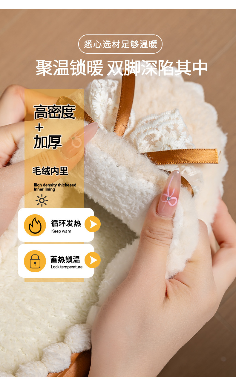 甜美蝴蝶结棉拖鞋女秋冬季室内居家用宿舍加毛绒厚底保暖月子托鞋