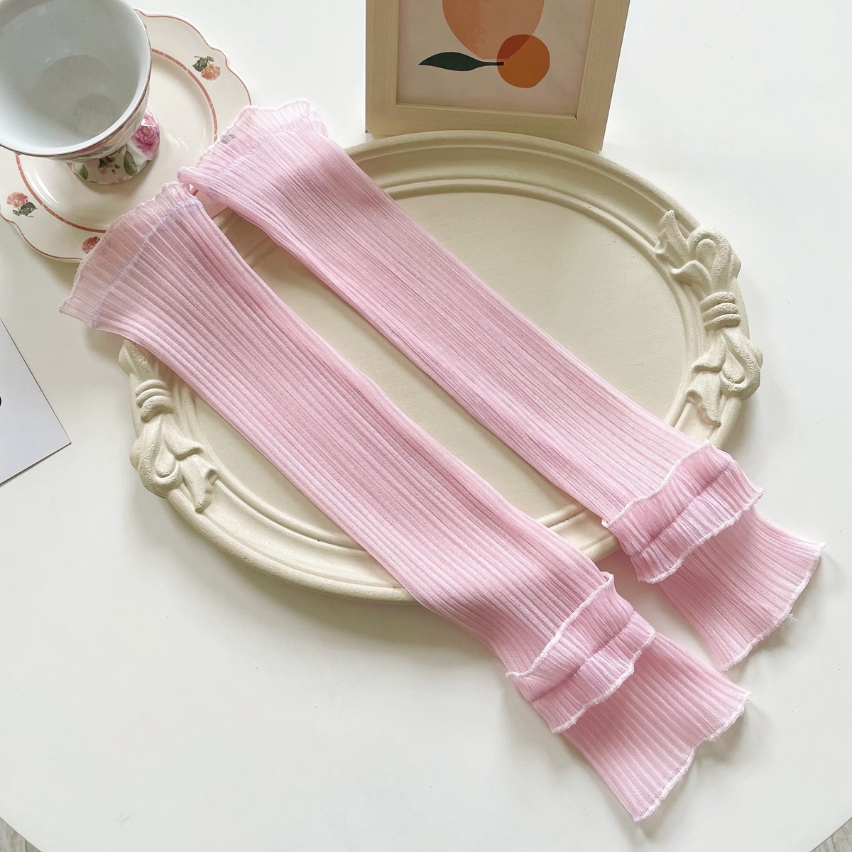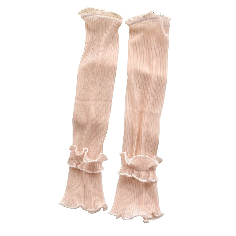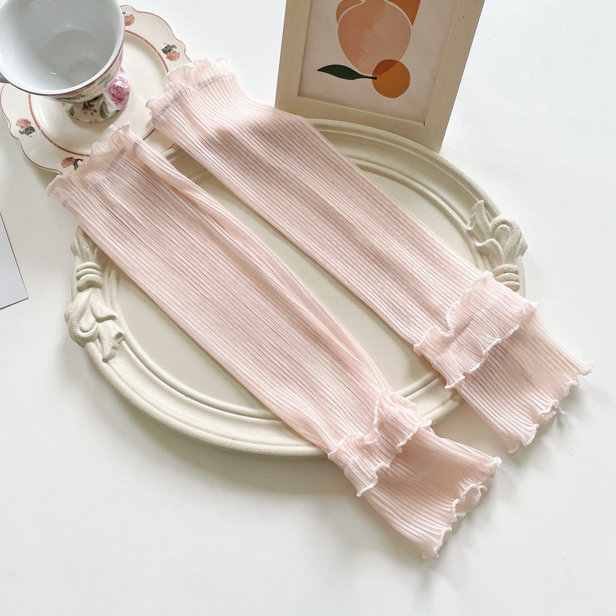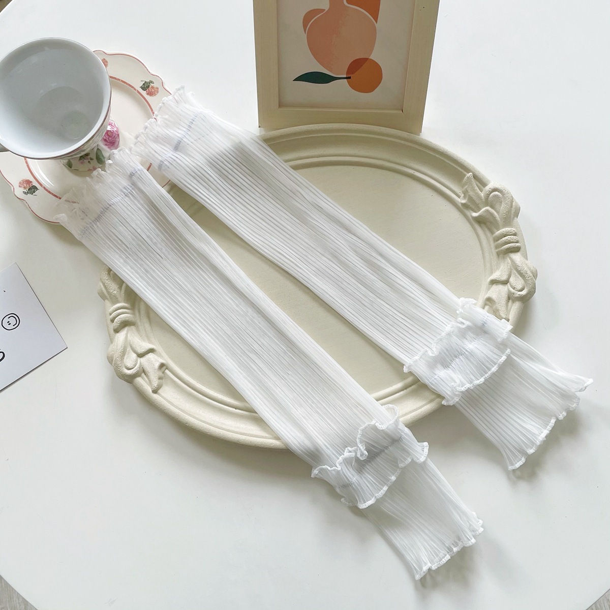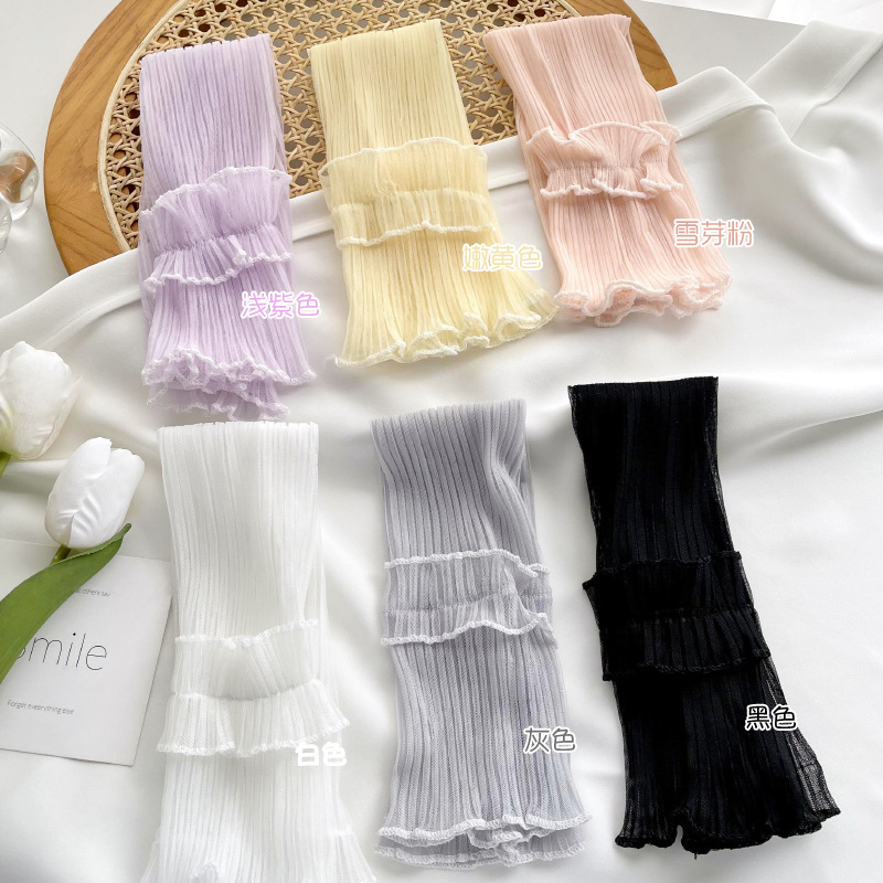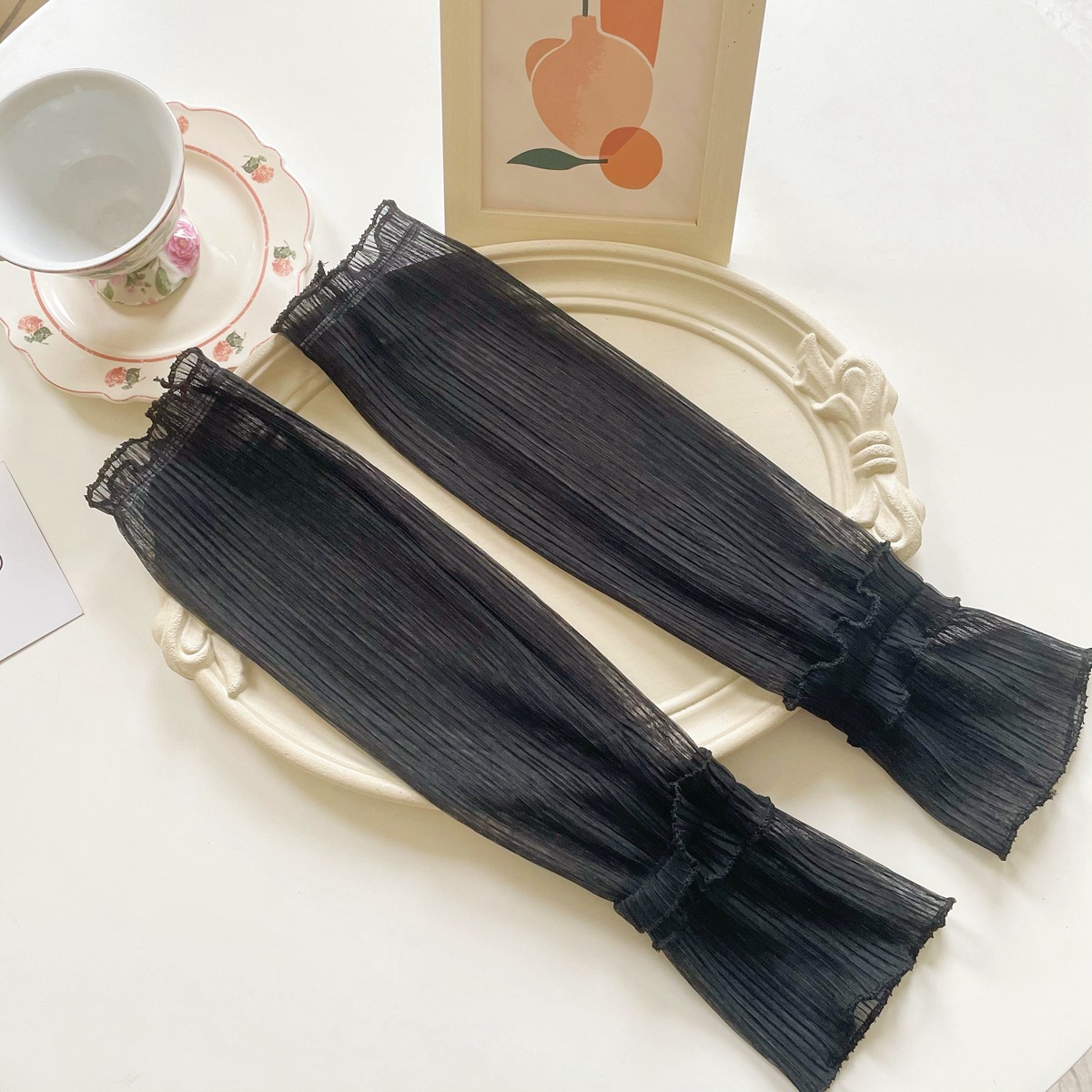 长款透气皱皱纱户外防晒黑袖套冰丝荷叶边网纱女开车夏季防护冰袖