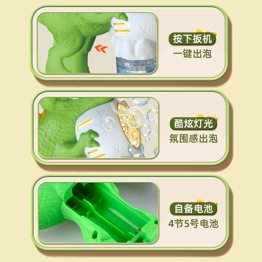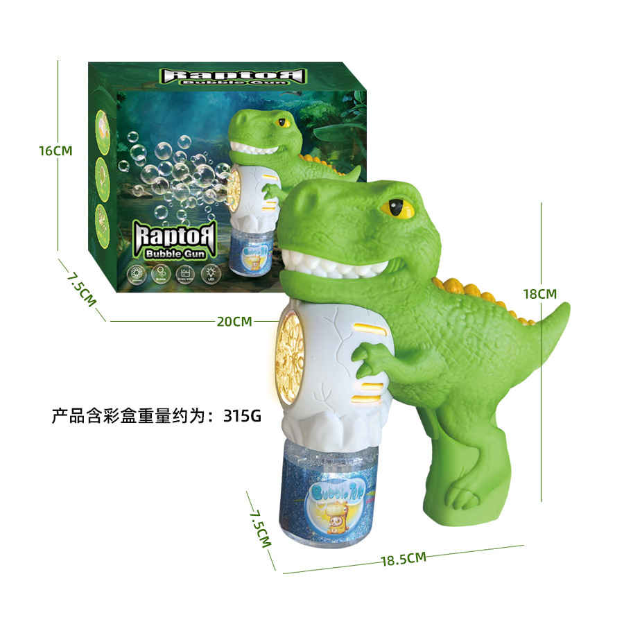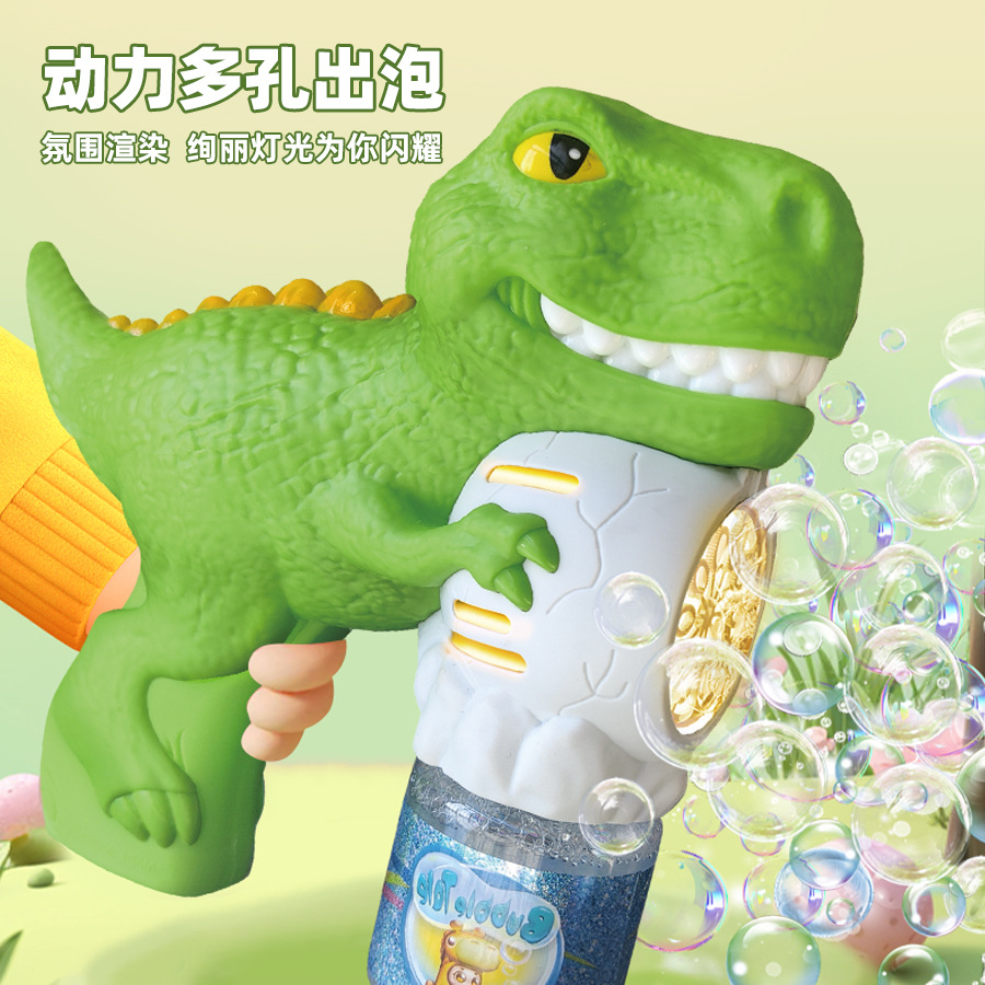 跨境恐龙电动泡泡枪全自动手持发光吹泡泡机六一儿童玩具厂家批发