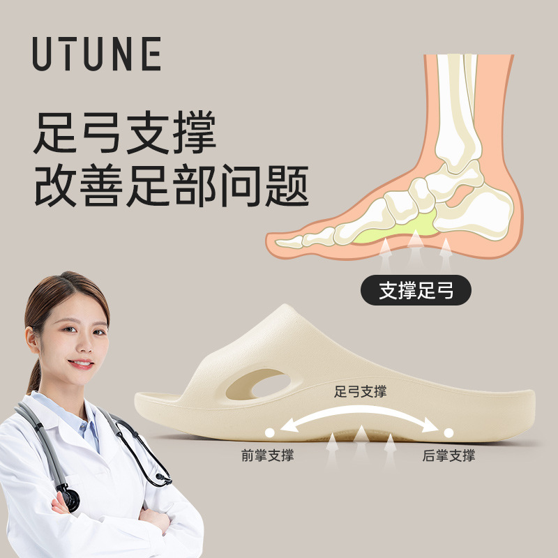 优调足弓支撑拖鞋女室内家居防滑防臭EVA浴室洗澡扁平足凉拖男士