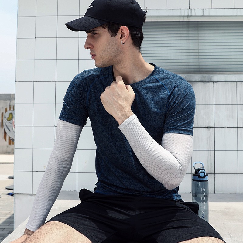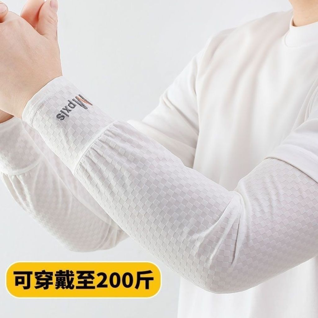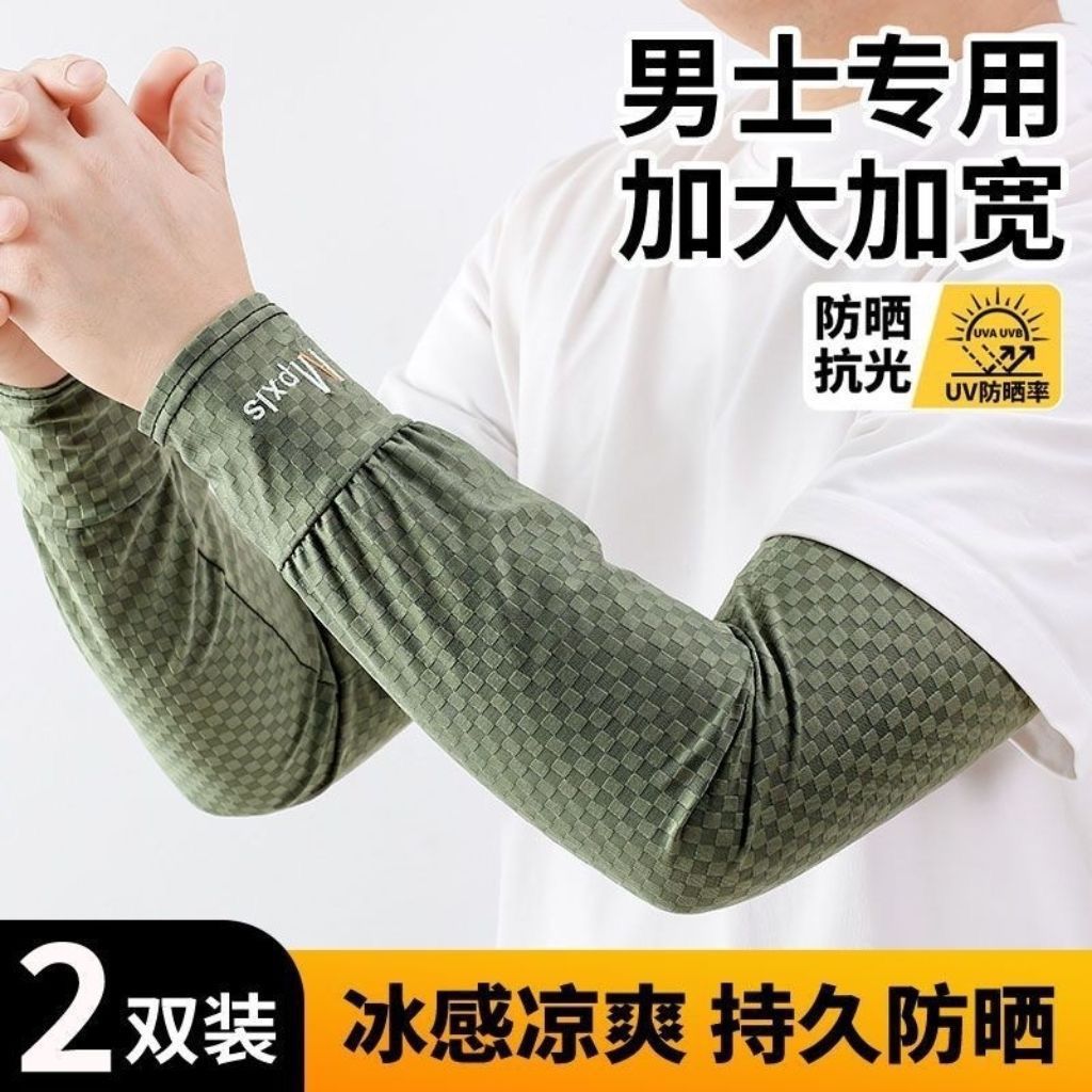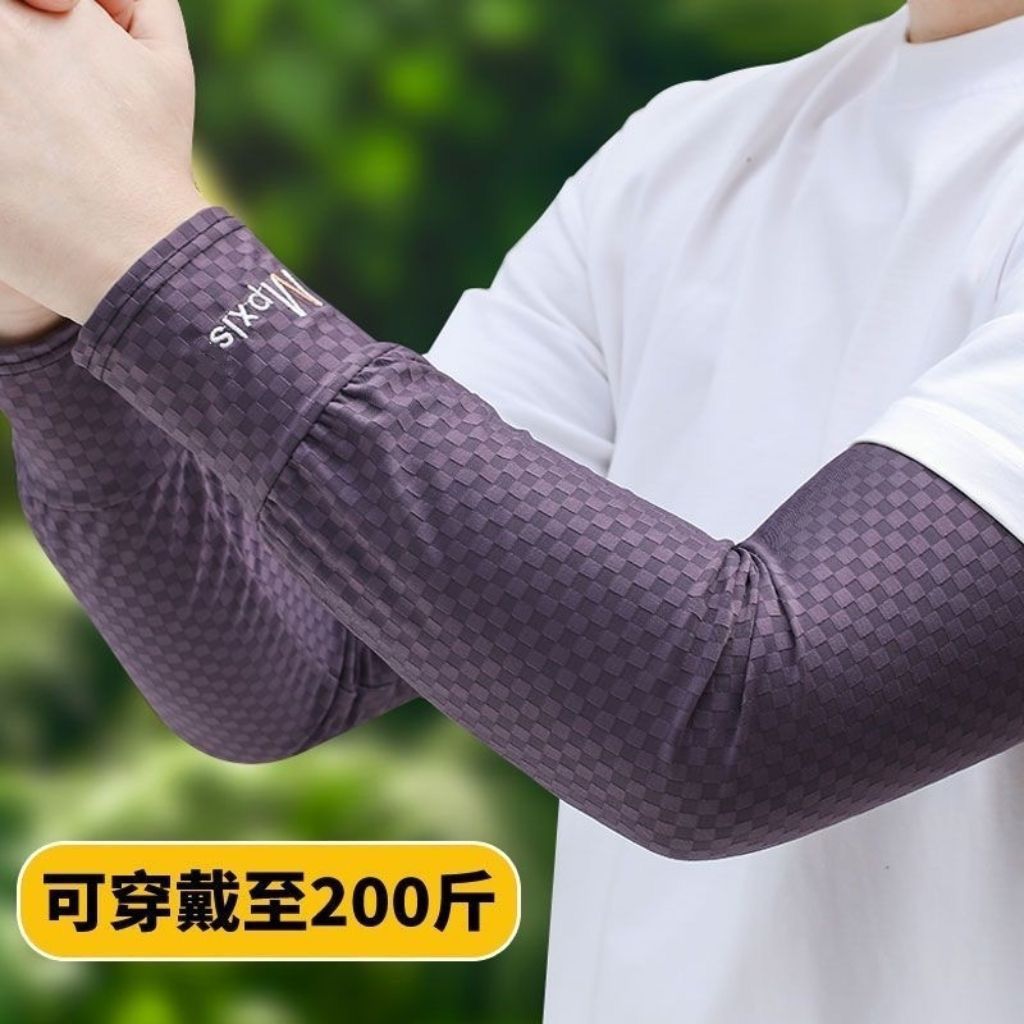 冰袖夏季男士防晒冰袖男款护臂方格冰丝MP冰袖套男夏季男防晒袖套