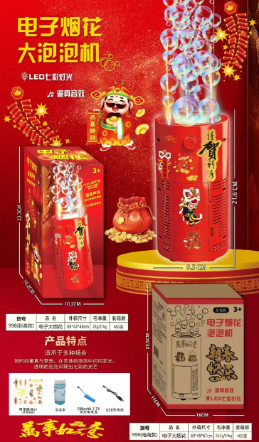 新年烟花泡泡机全自动吹泡泡儿童网红婚礼灯光春节仿真礼花玩具