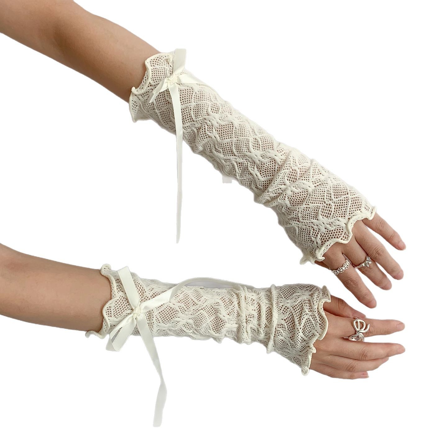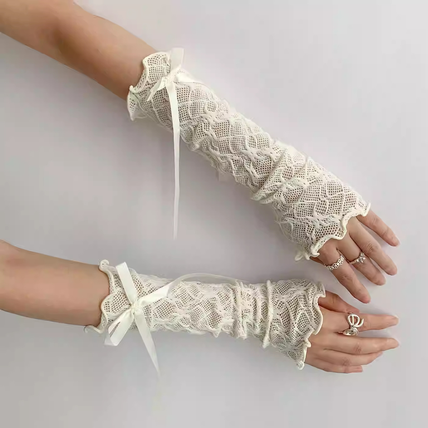 黑色长款手套lolita蕾丝亚文化女绑带手袖套辣妹y2k洛丽塔芭蕾风