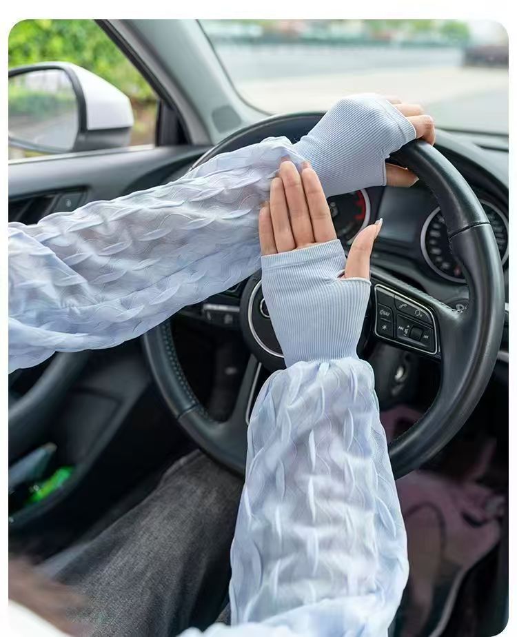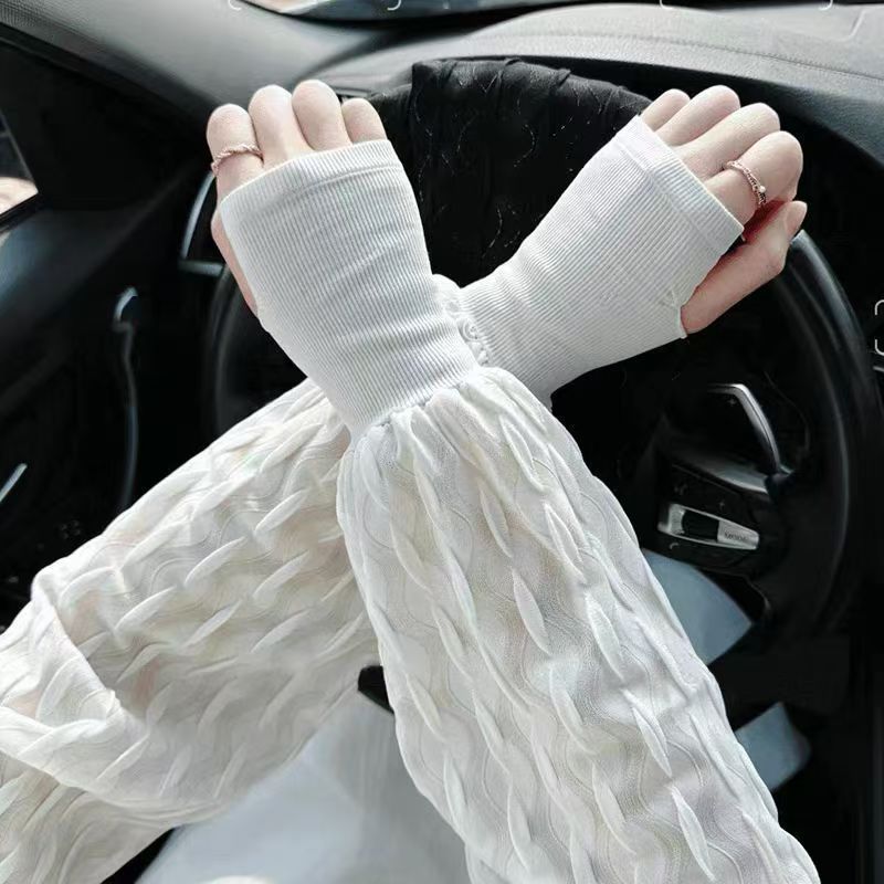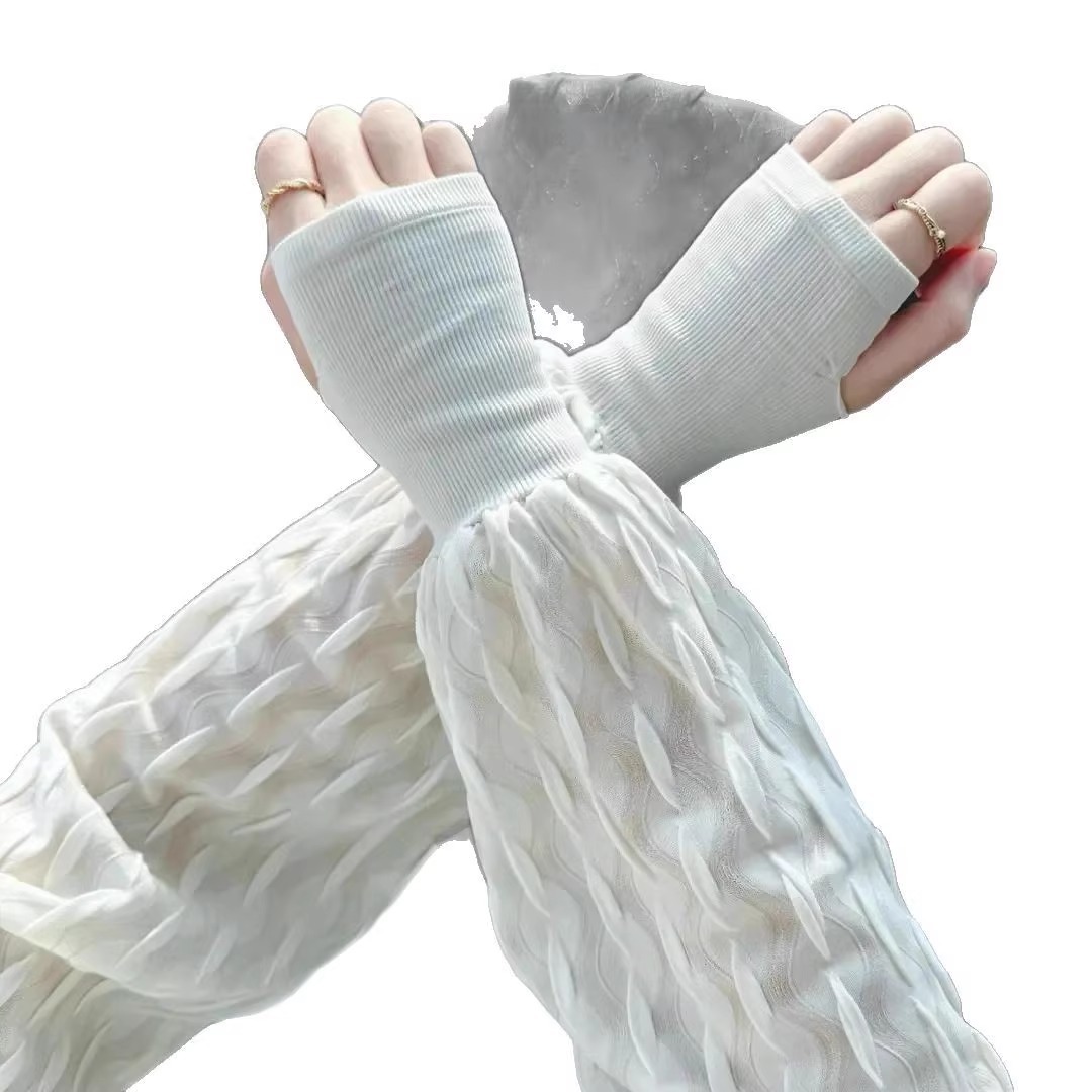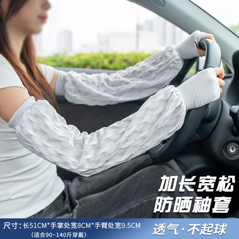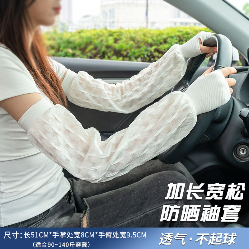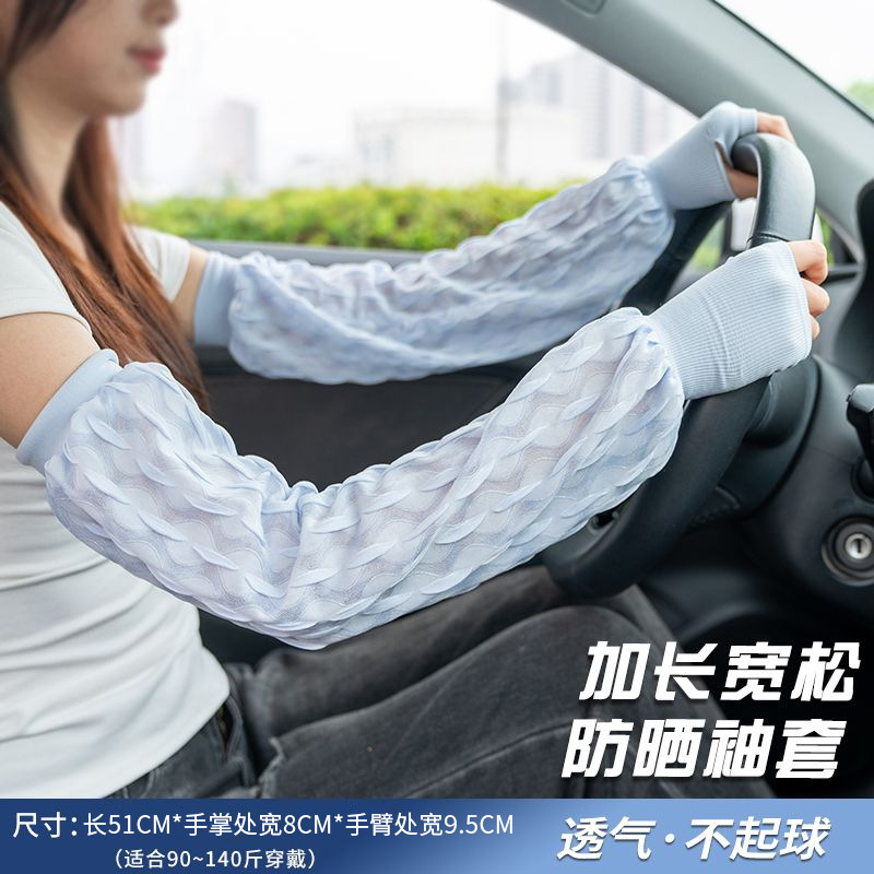 防晒冰丝袖套女夏季韩版罗口宽松透气开车骑行护臂加大手袖百搭潮