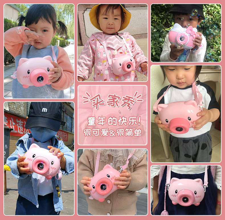 新款网红吹泡泡机抖音手持男女孩小猪照相机枪器儿童玩具电动直销