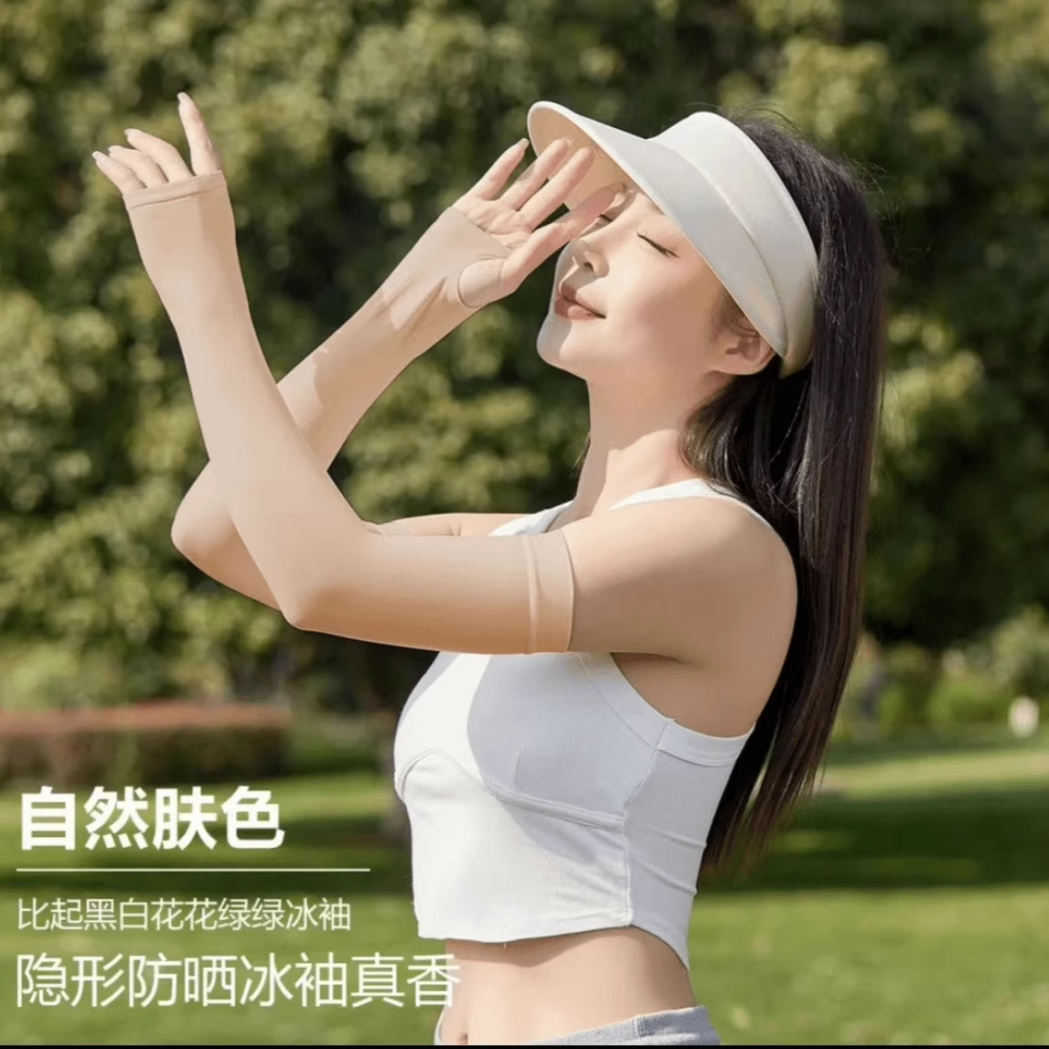 肤色隐形冰袖防晒袖套冰丝女夏2025新款手臂防紫外线薄款透气骑行
