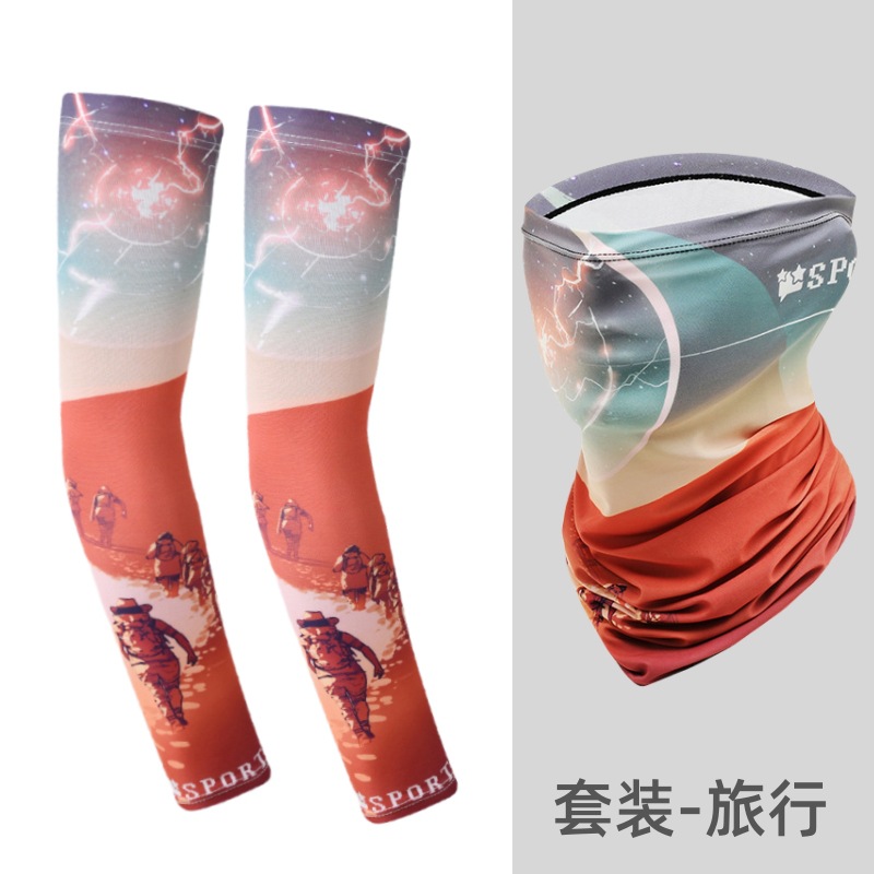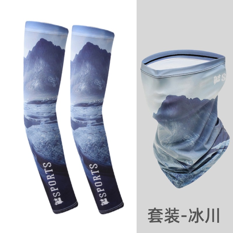 冰丝袖套男防晒手臂套女夏季防紫外线面罩户外钓鱼运动骑行车头巾
