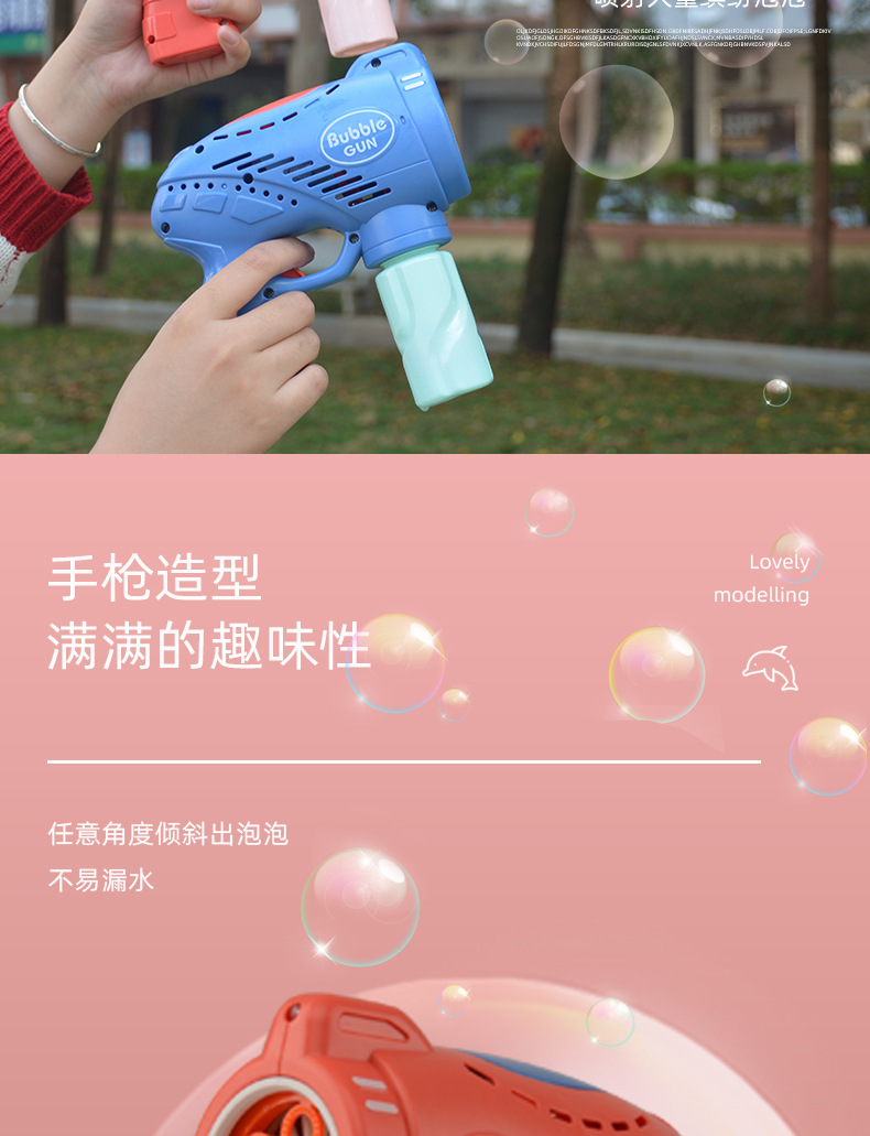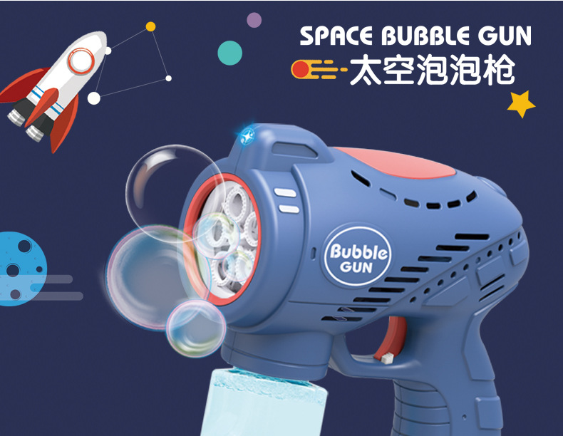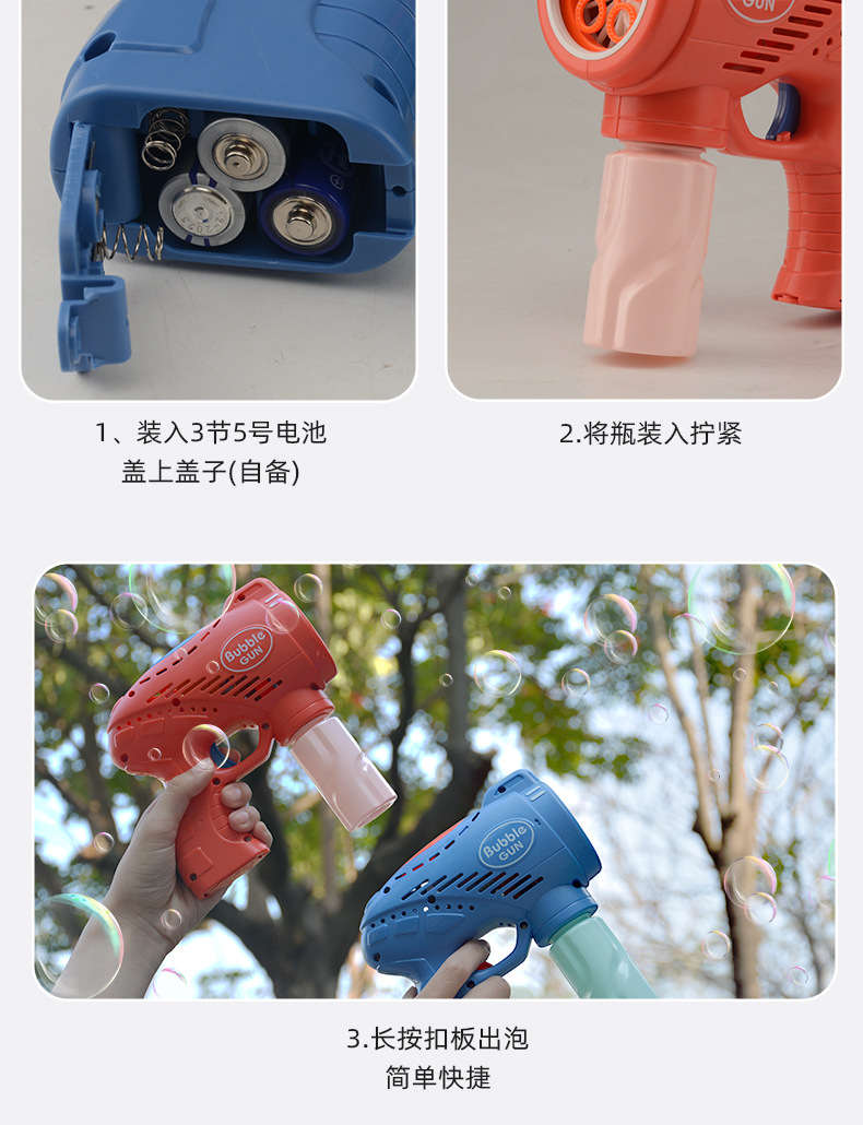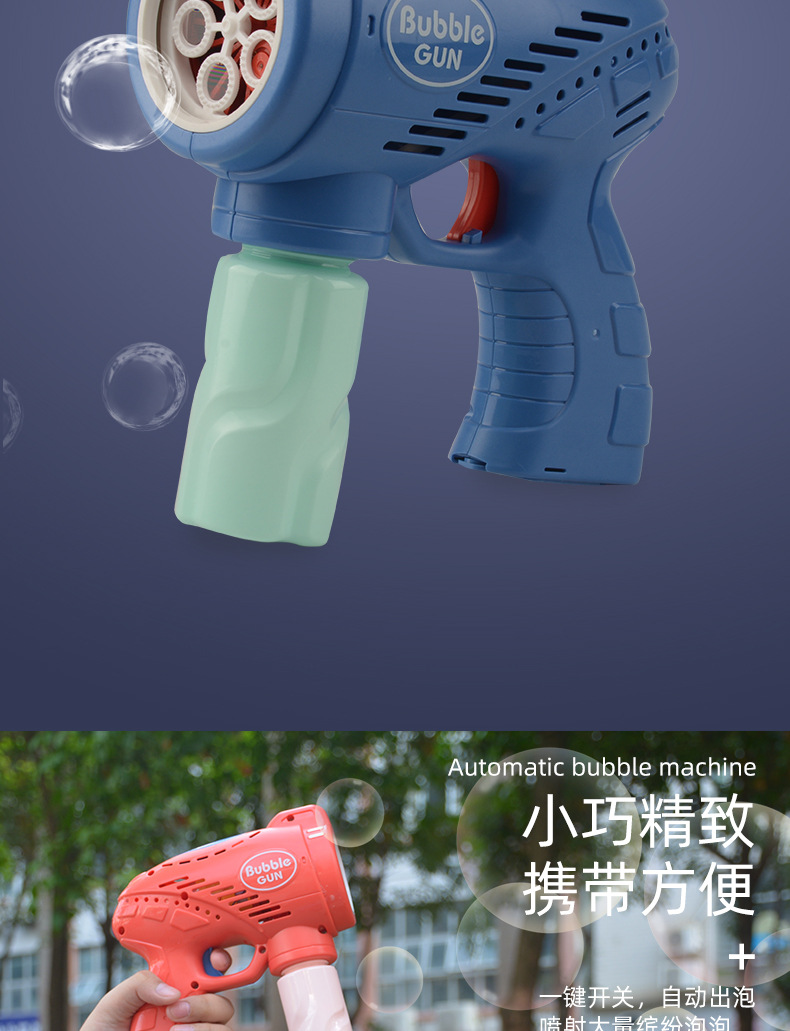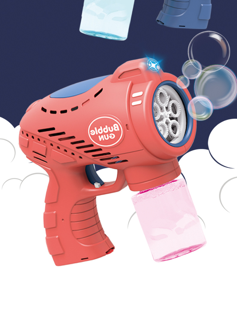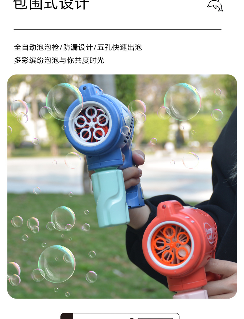 儿童玩具手持吹泡泡枪五孔带灯光音乐网红卡通电动泡泡机地摊批发