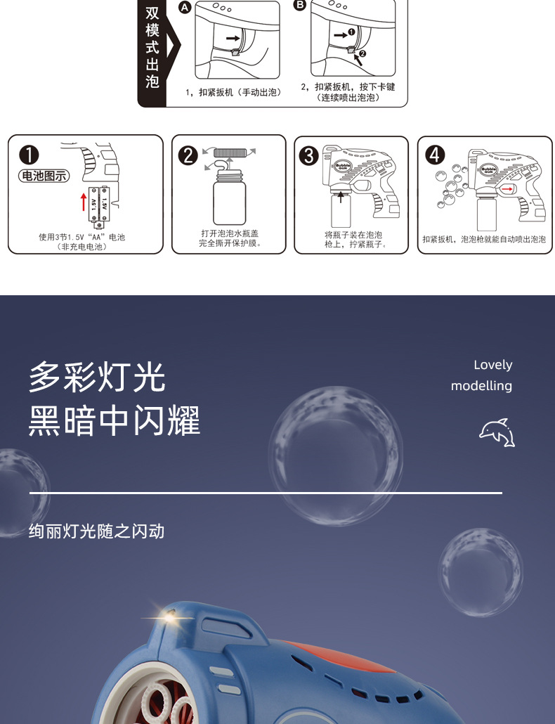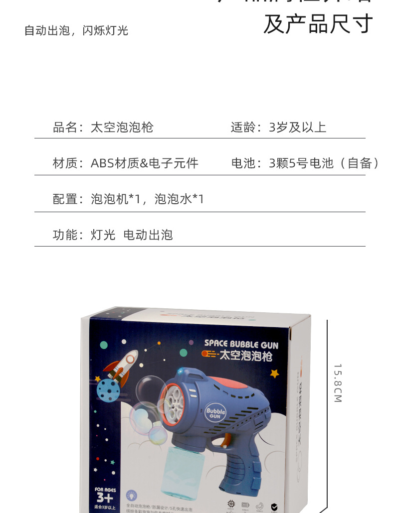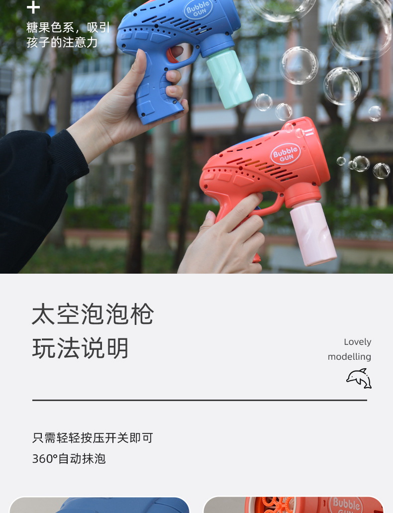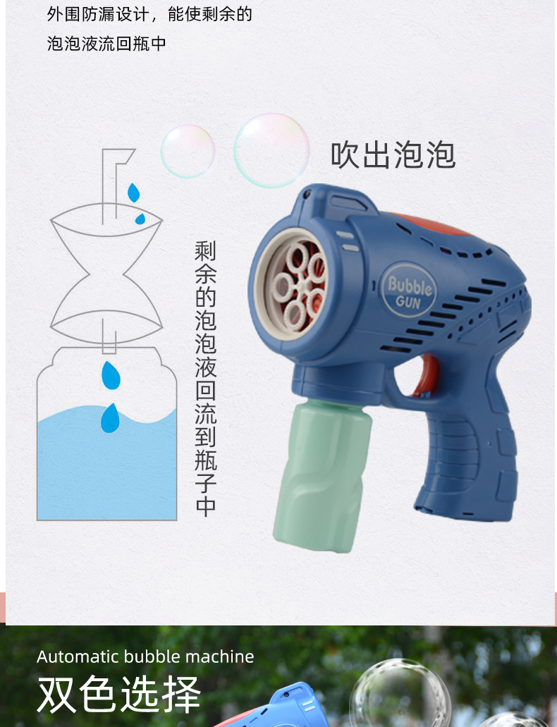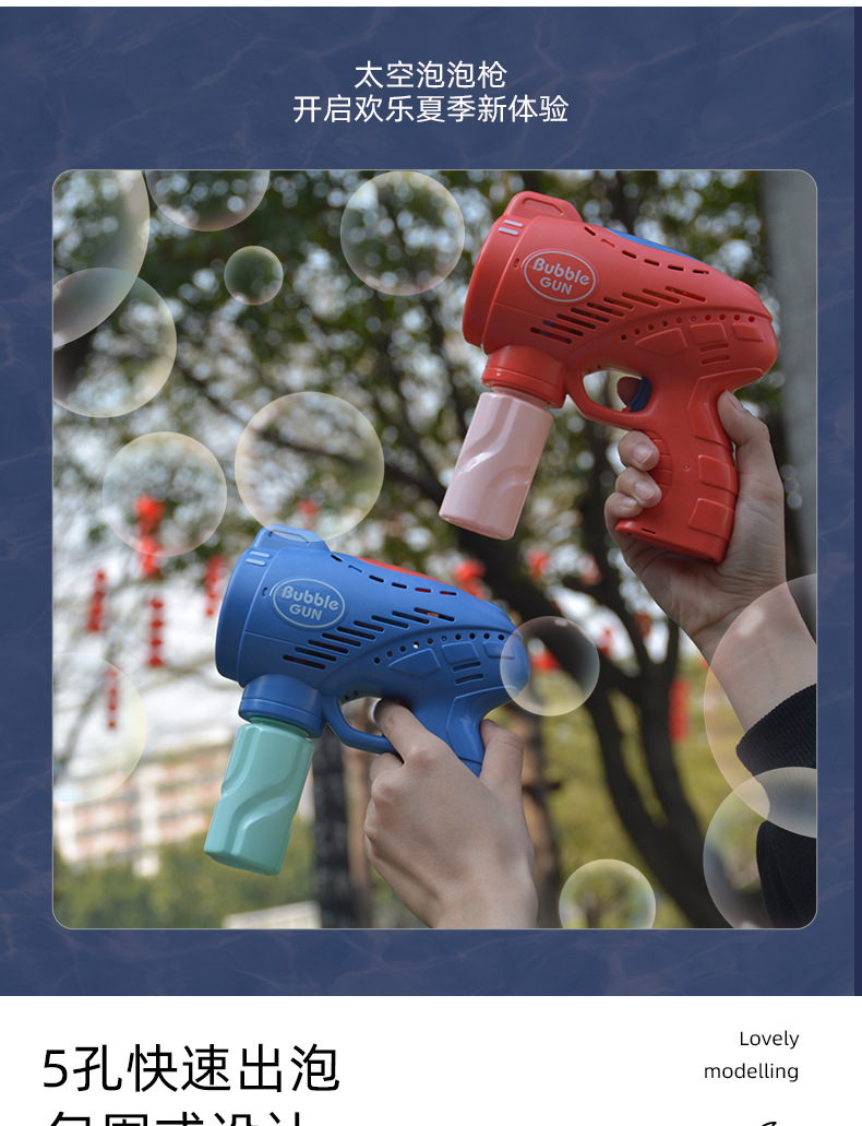 儿童玩具手持吹泡泡枪五孔带灯光音乐网红卡通电动泡泡机地摊批发