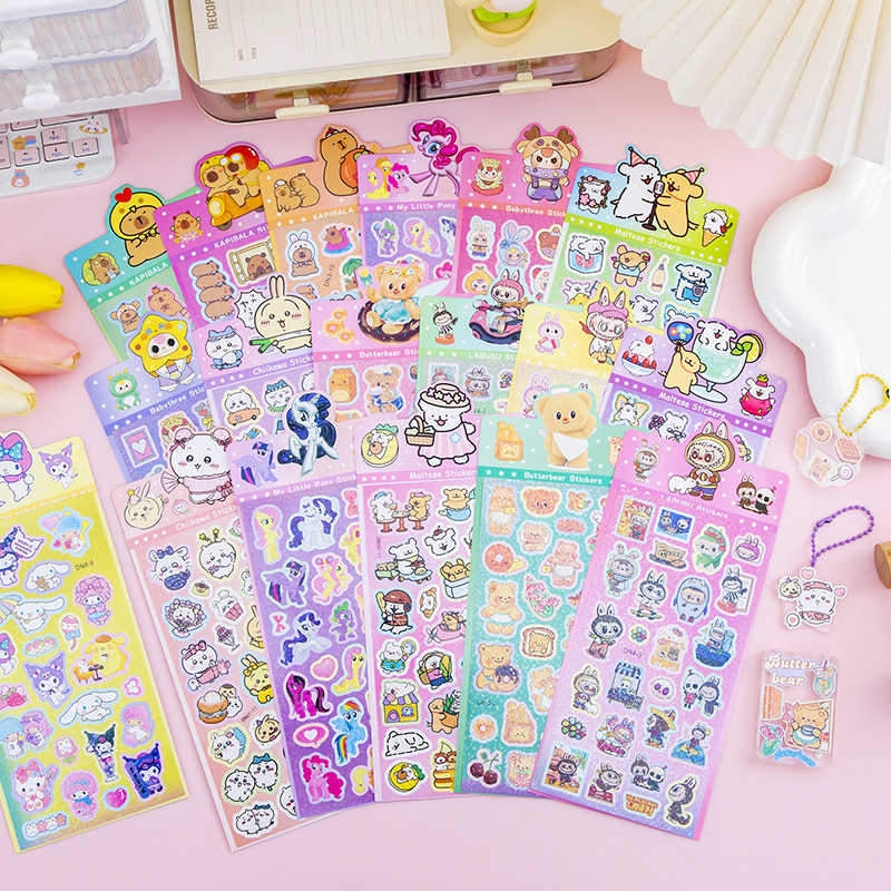 创意卡通镭射贴纸儿童DIY免裁剪手账贴纸装饰贴画幼儿园奖品礼物