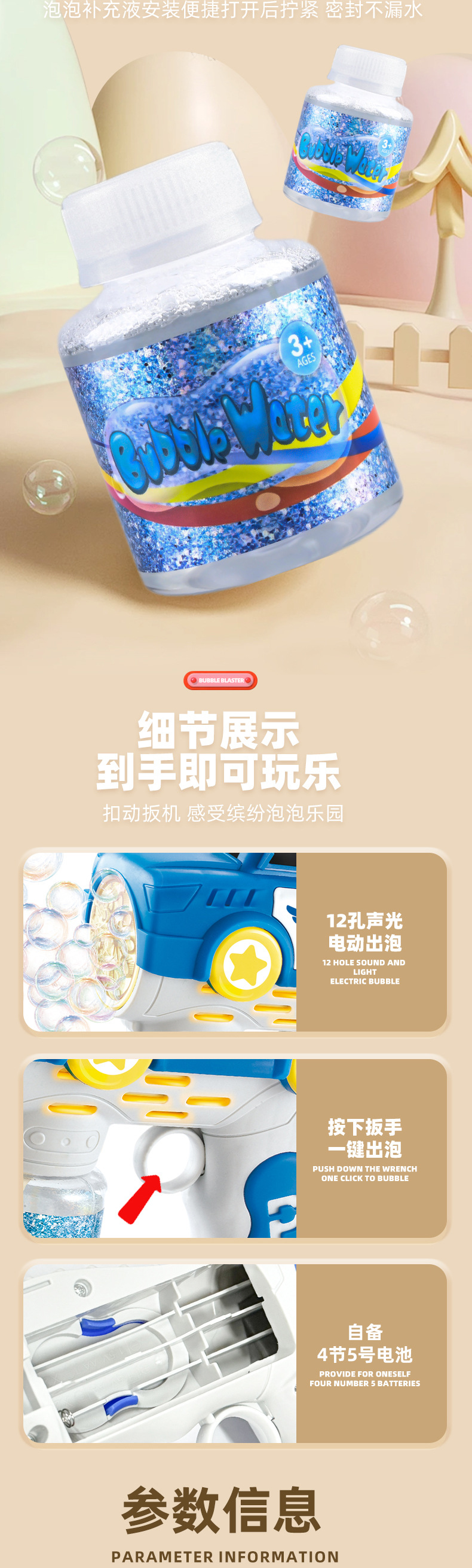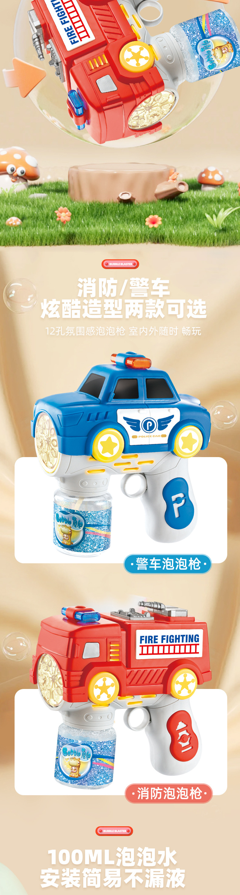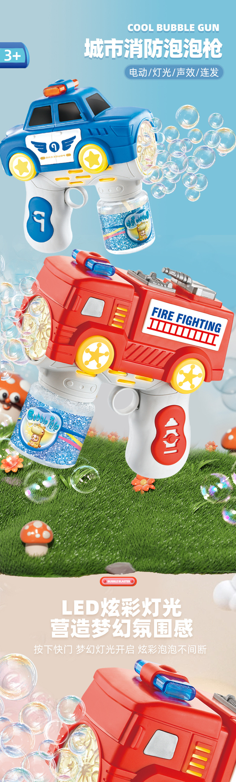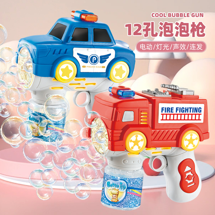 儿童电动泡泡机户外手持消防工程警车泡泡枪泡泡机全自动灯光玩具