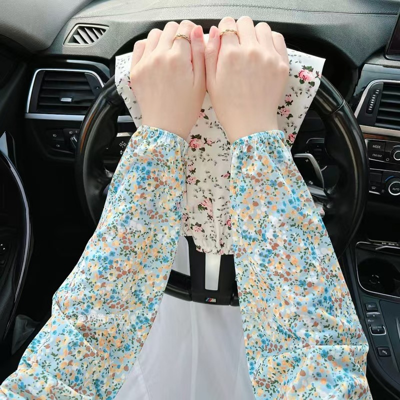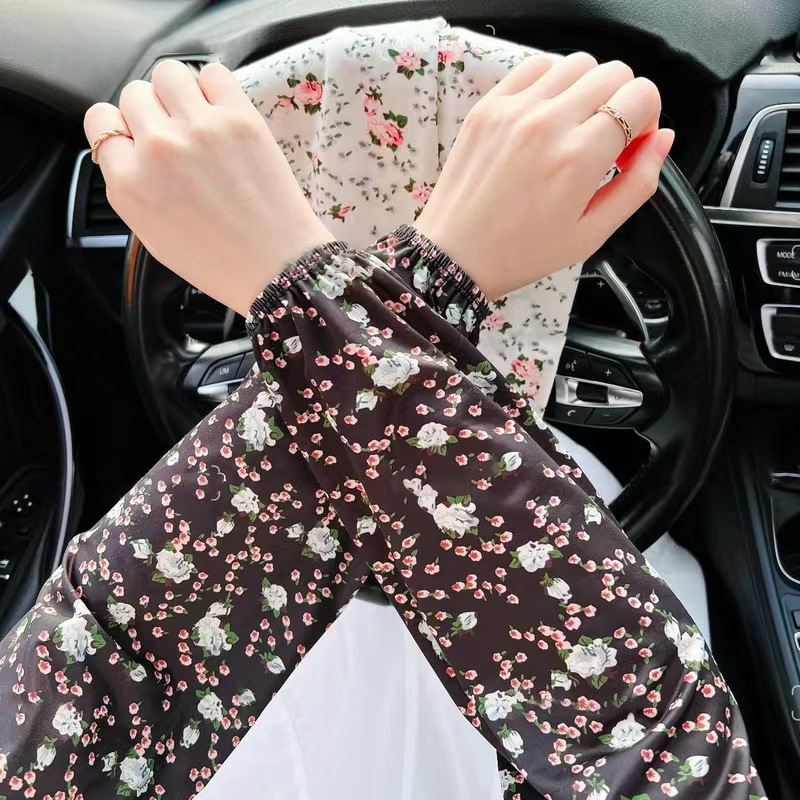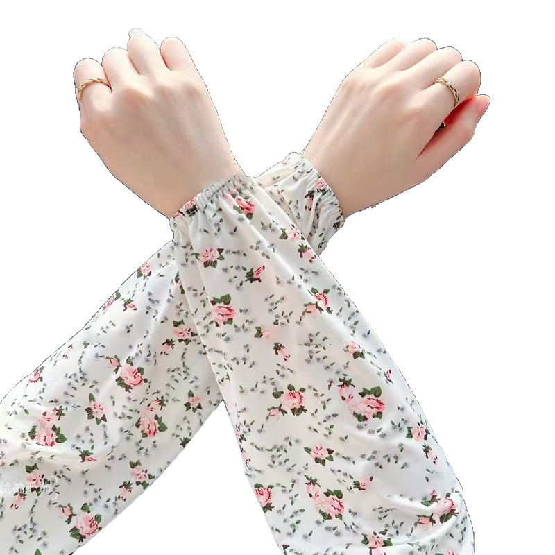新款碎花冰丝冰袖女夏季弹力护手臂长款手袖干活骑车宽松大码袖套