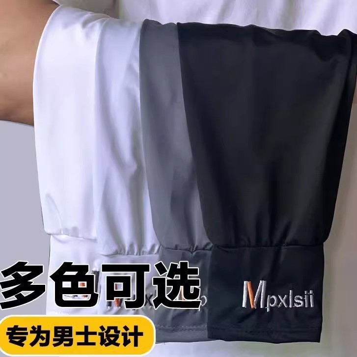夏季直筒冰丝防晒冰袖男士大码加长加大袖套手套骑行套袖外卖护臂