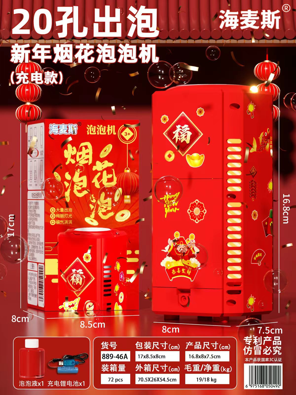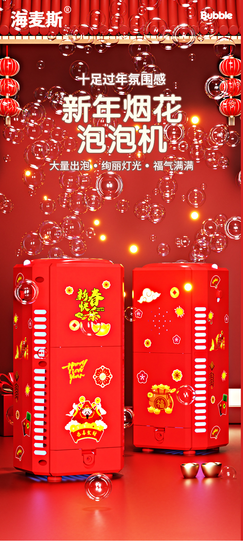 新年烟花爆竹泡泡机过年玩具发光音效婚礼礼花电动吹泡泡儿童玩具